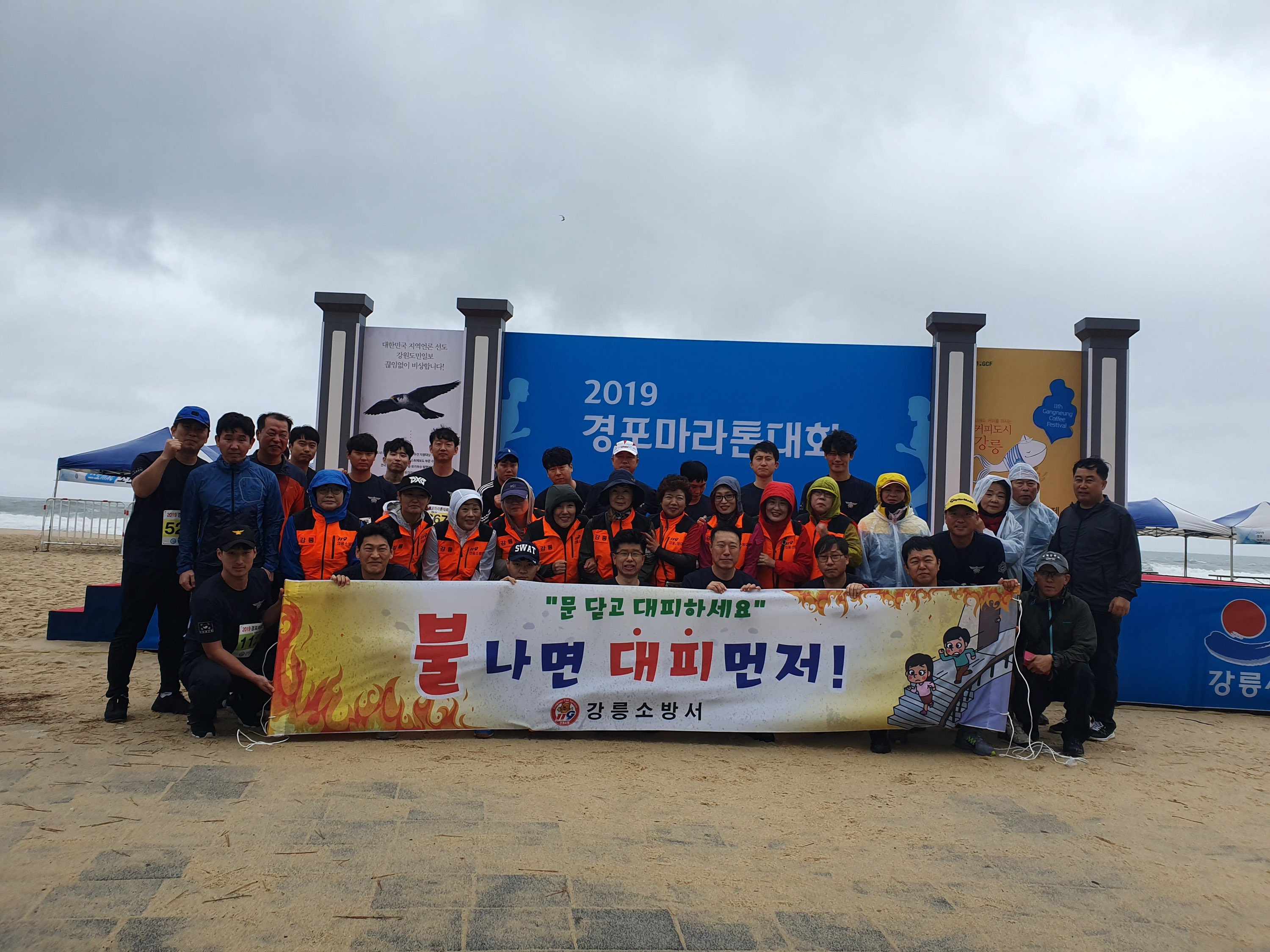 강릉소방서(서장 진형민)는 5일 강릉 경포~사천~연곡 해안도로에서 펼쳐진 ‘2019 경포마라톤대회’에 참가하여 직원 사기진작과 화합의 시간을 가졌으며, 주택용 소방시설 설치 촉진 등 소방안전문화 캠페인을 벌였다고 밝혔다