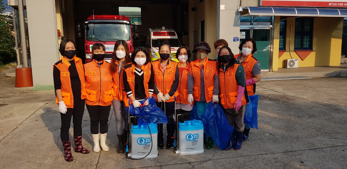 이번 방역활동은 추석 명절을 앞두고 지난 19, 20일 이틀간 미탄의용소방대 21명(남성 11명, 여성 10명)이