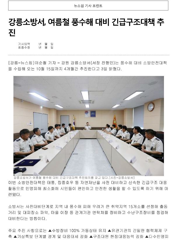 | 23952 | (강릉) 여름철 풍수해 대비 긴급구조대책 추진 | 강릉홍보 | 2019-07-04 | 335 | |