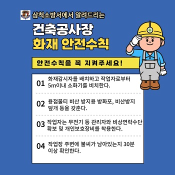 | 26591 | 삼척소방서, 공사장 화재 예방수칙 홍보 | 삼척홍보 | 2022-05-09 | 1120 | |