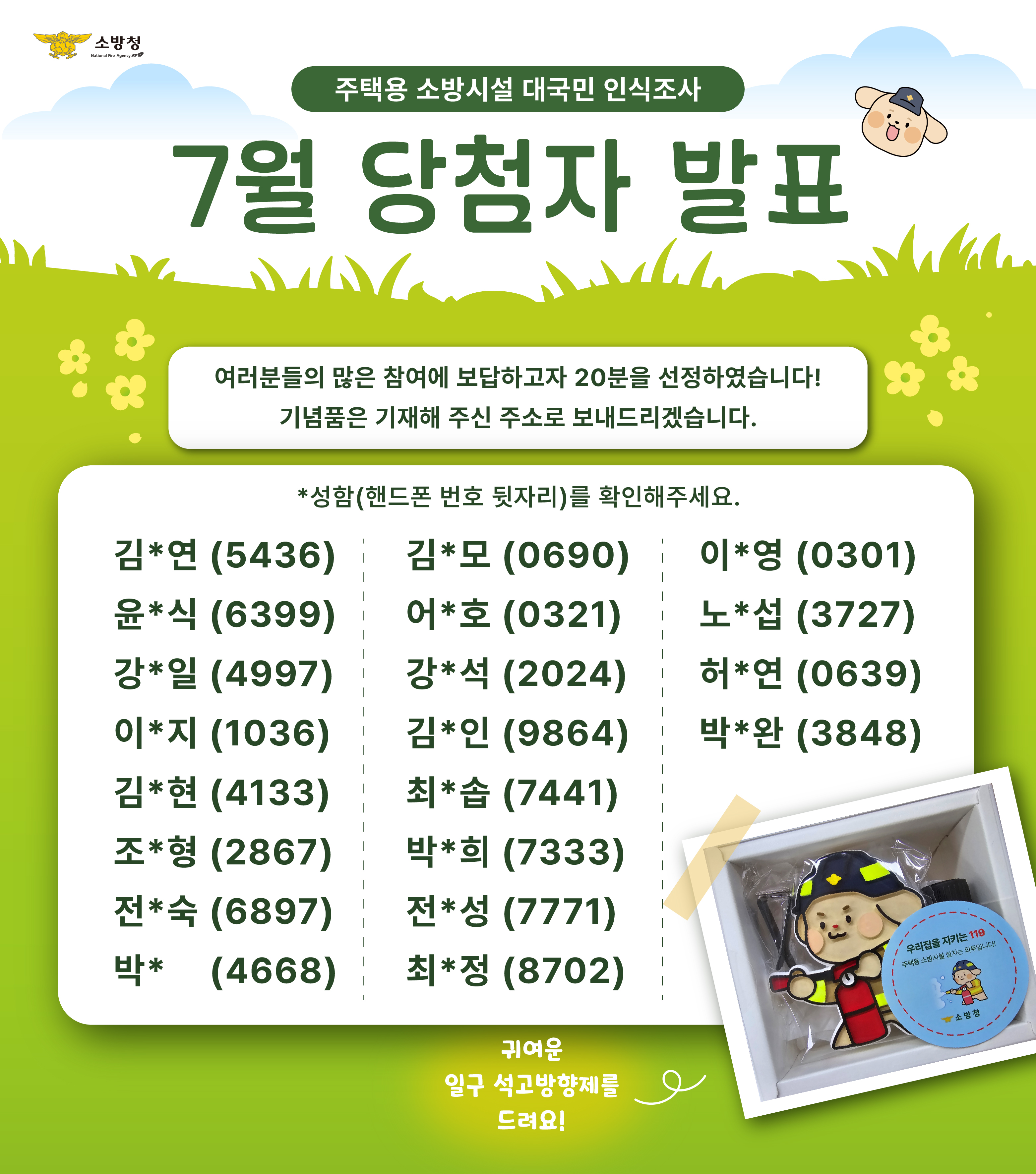 | 26785 | 삼척소방서, 7월 대국민 인식조사 당첨자 발표 | 삼척홍보 | 2024-08-14 | 806 | |