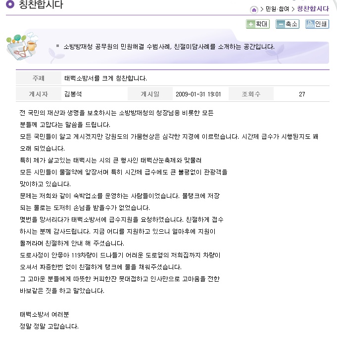 태백소방서를 칭찬합니다(소방방재청 펌글)
