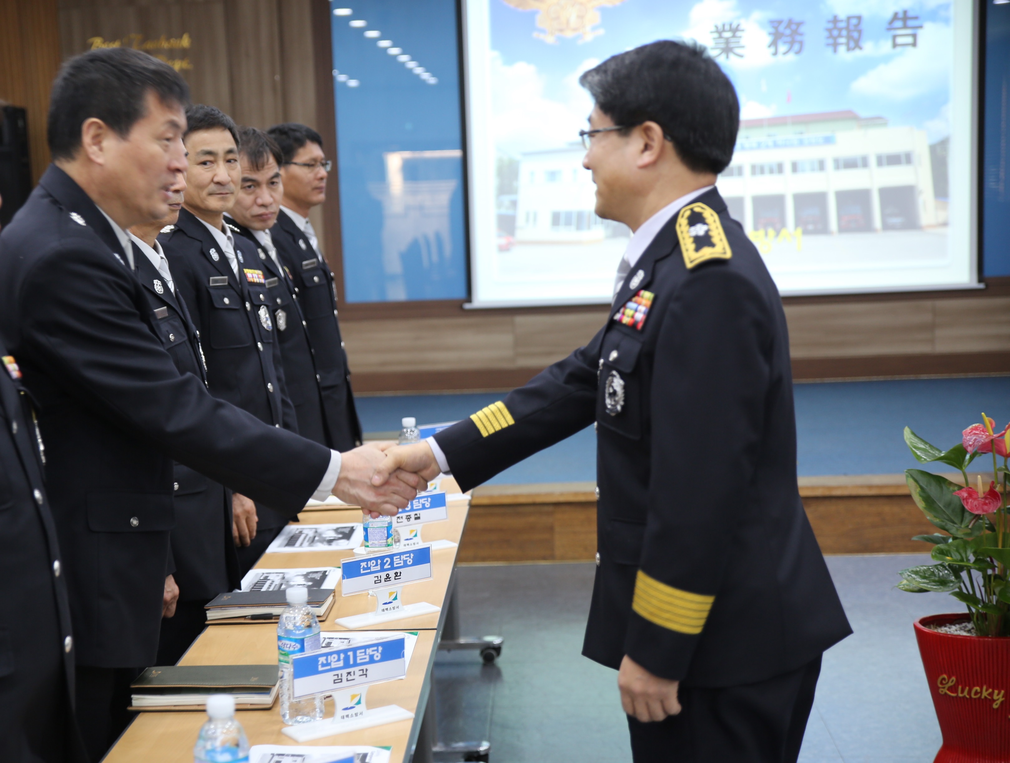 이흥교 소방본부장은 3일 태백소방서, 정선소방서, 강원도소방학교 방문, 직원들을 격려하였다.