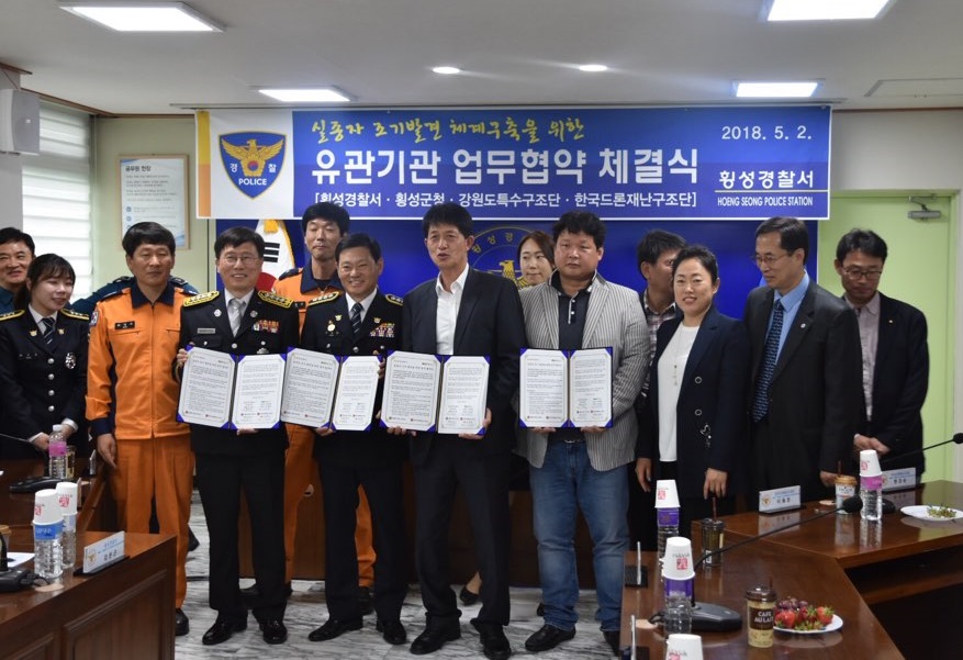 강원도소방본부 특수구조단(단장 남흥우)은 횡성군, 횡성경찰서 및 한국드론재난구조단과 함께 2일 오후5시 횡성경찰서 소회의실에서 드론을 이용한 실종자 수색 등 효율적 구조활동을 위한 업무협약을 체결하였다.