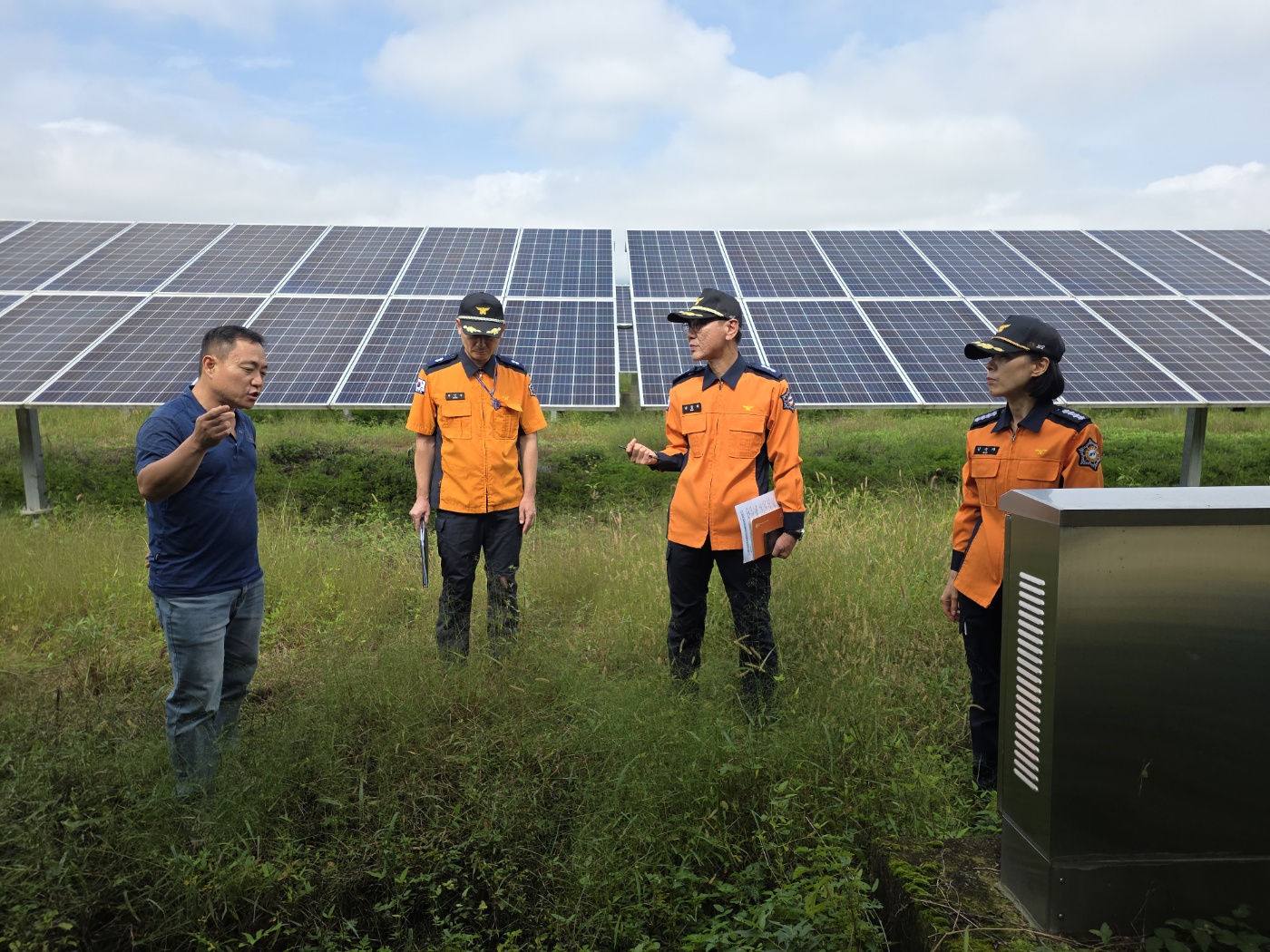 〇 이번 점검은 배터리를 사용하는 도내 태양광 발전 ESS시설 중 ▲㈜율문쏠라테크 등을 대상으로 진행되었으며, ▲화재 예방을 위한 선제적 안전점검 ▲에너지 저장시설 화재 취약요인 분석 ▲자체 소방안전관리 전반에 대한 관계자 의견 청취 등이 중점적으로 이루어졌다.