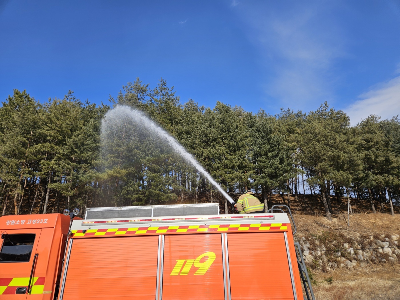 ○ ○ 강원소방은 대규모 소방력 동원 대비 지휘체계를 강화하고 자원관리 운영 여건 등을 사전 확인하여 산불 발생 시 소방헬기, 험지펌프 등 가용 소방력을 총동원해 초기에 진압한다는 계획이다.