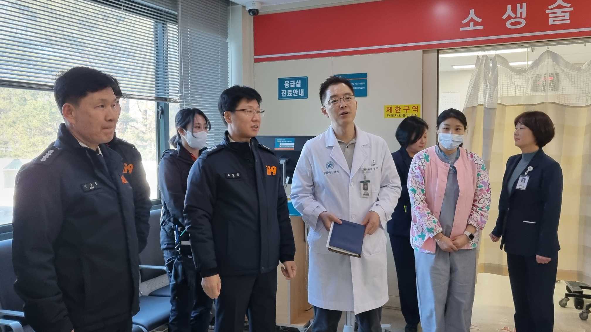 ○ 강원특별자치도 소방본부(본부장 오승훈)는 중증응급환자에 대한 신속하고 공백 없는 구급서비스 제공을 위해 지난 1월 14일 강원대학교병원에 이어, 21일 강릉아산병원 권역·지역응급의료센터 관계자들과 응급의료 업무 협력 강화를 위한 간담회를 개최했다.