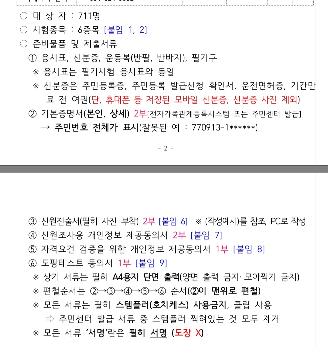 - 주민번호 등 개인정보는 사생활 침해나 부당하게 이용될 수 있으니 주의하시기 바랍니다.
