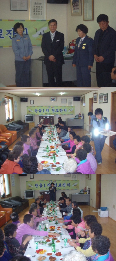 성산여성의용대는 20일을 맞이하여 관음1리와 자매결연식을 거행함과 동시에 관음1리 경로잔치와 봉사활동을 하는 행사를 가지었다.