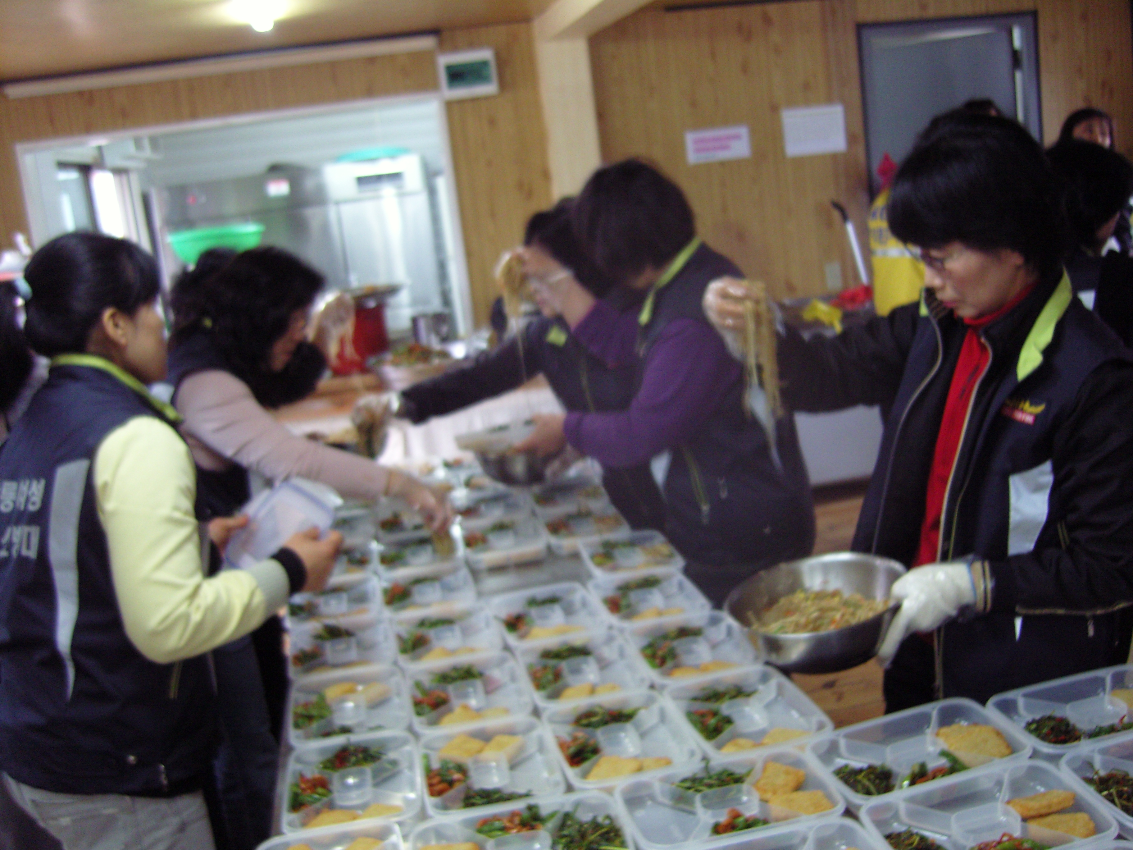 심술궂은 빗방울 소릴들어면서 열심히 도시락준비히시는 여성의용소방대 울~회원님들~