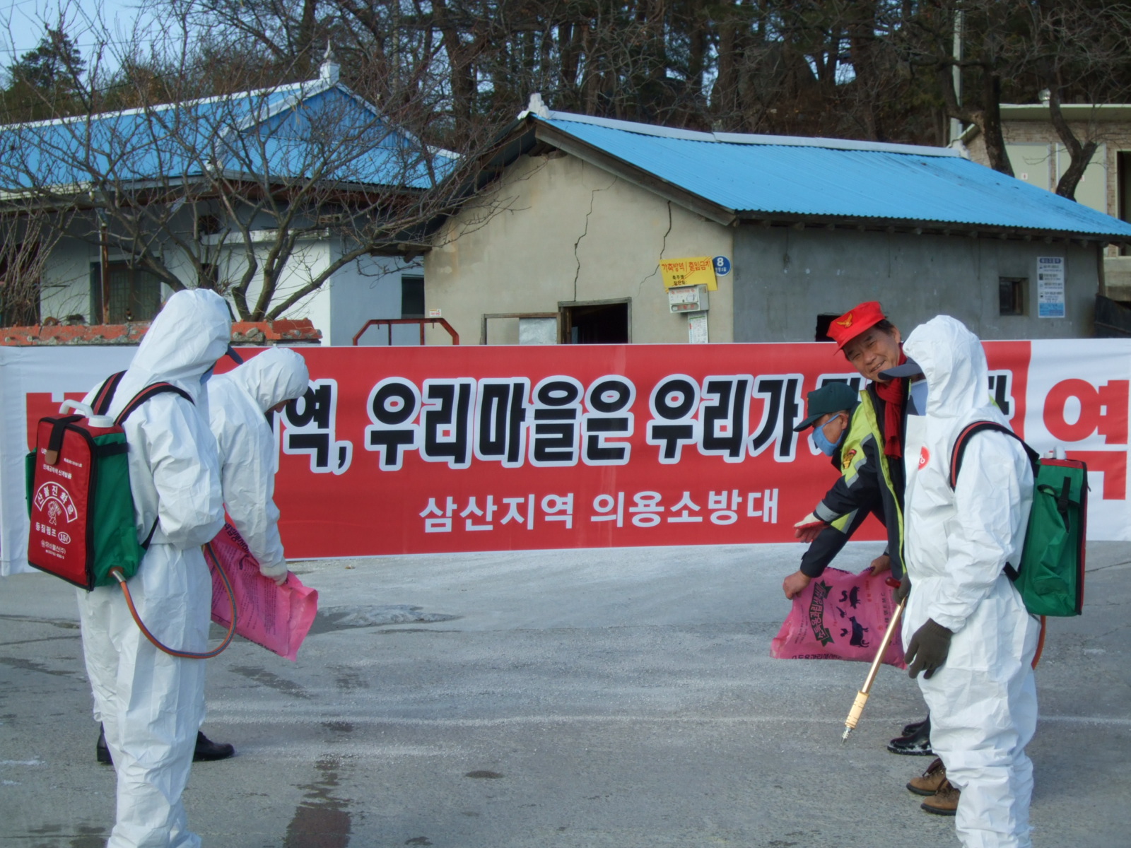 삼산 의용소방대 구제역 방역 실시