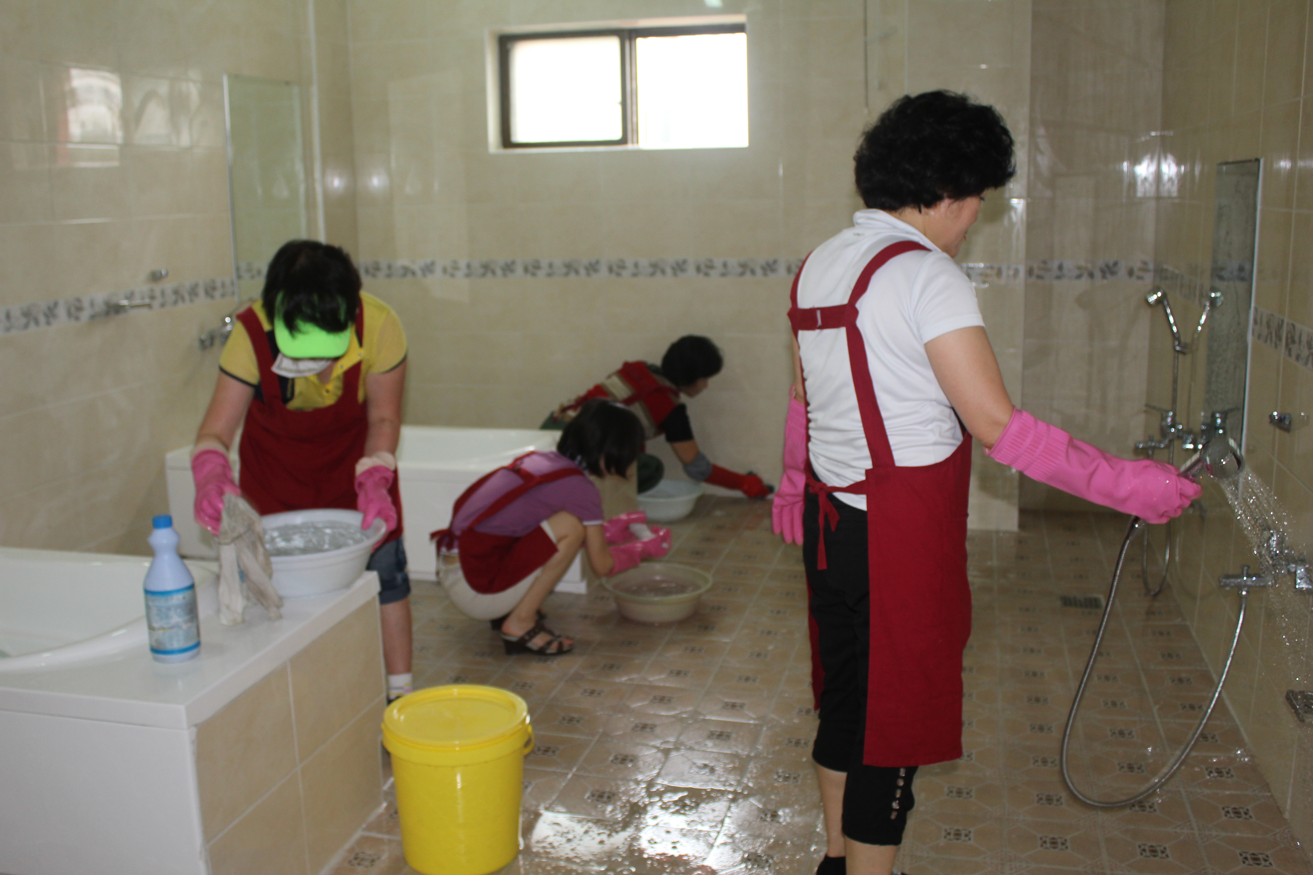 34도의 무더운날씨에 땀범벅으로 봉사하시는 강릉여대 대원님들 모습입니다.