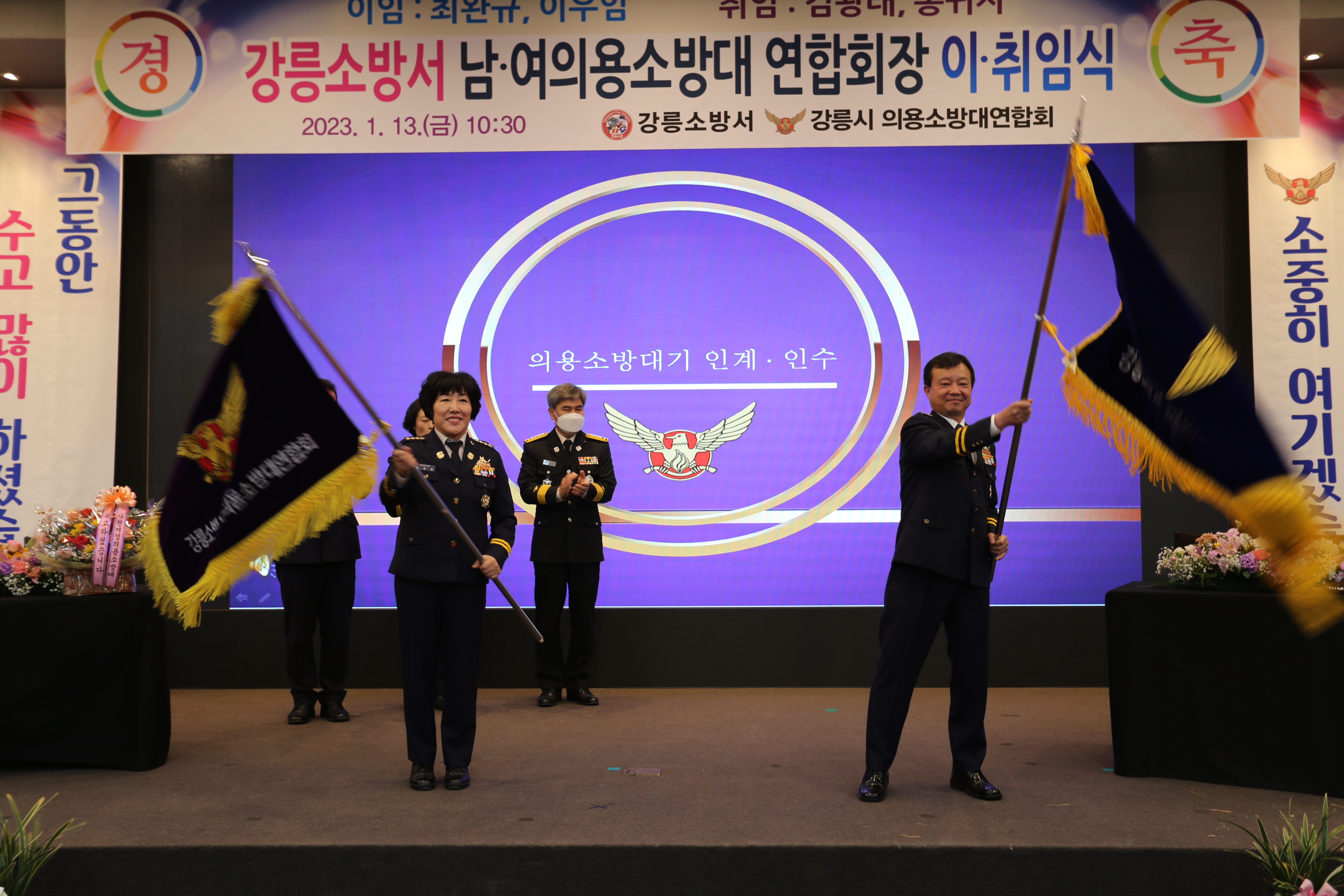 강릉소방서 남여의용소방대연합회장 이취임식 개최 결과입니다