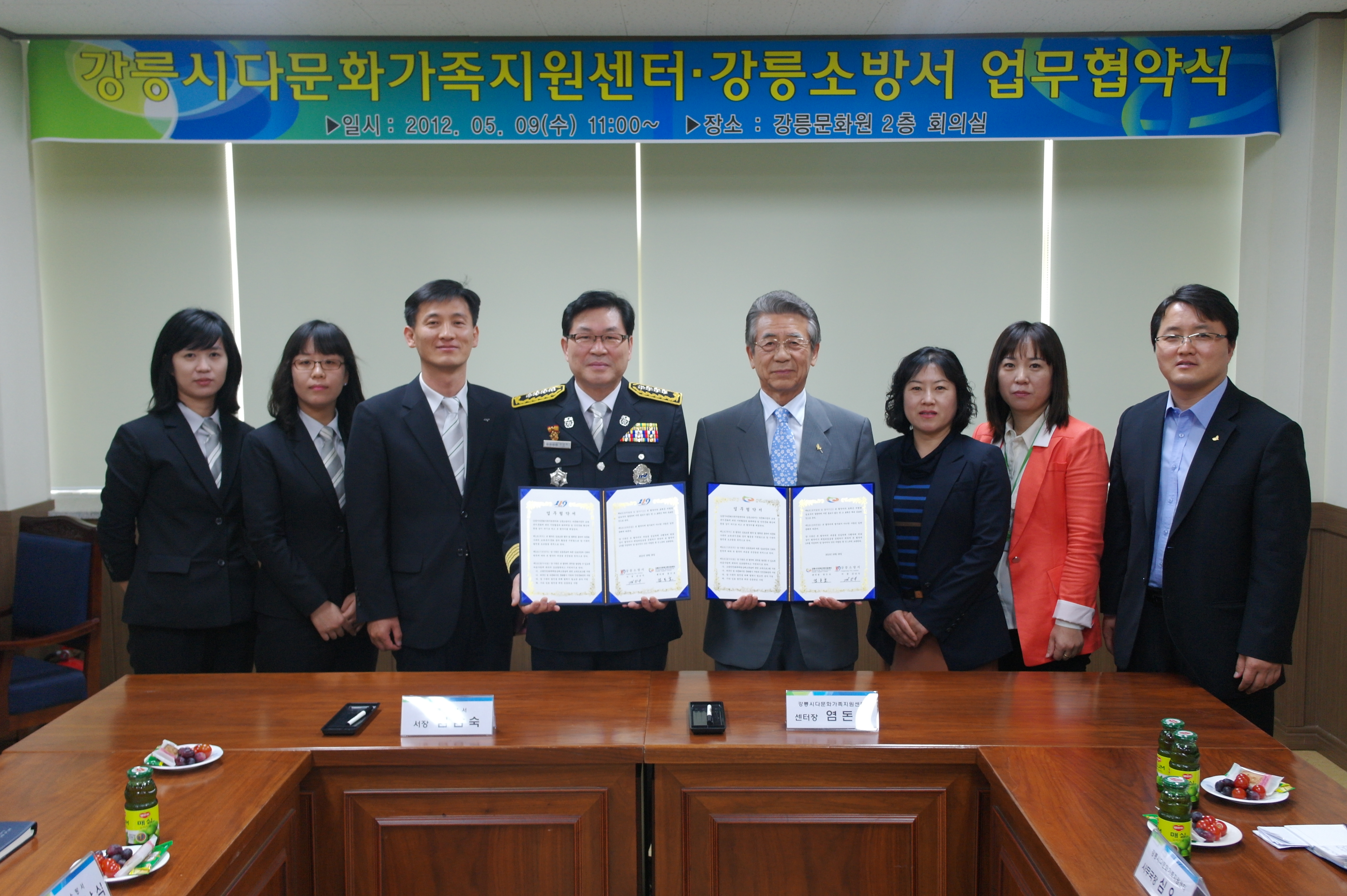 강릉소방서(서장 김남숙)는 5. 9(수) 11시 강릉문화원에서 강릉시다문화가족지원센터와 업무협약을 체결하고 다문화가족의 화재예방과 안전문화확산에 앞장서기로 하였습니다.