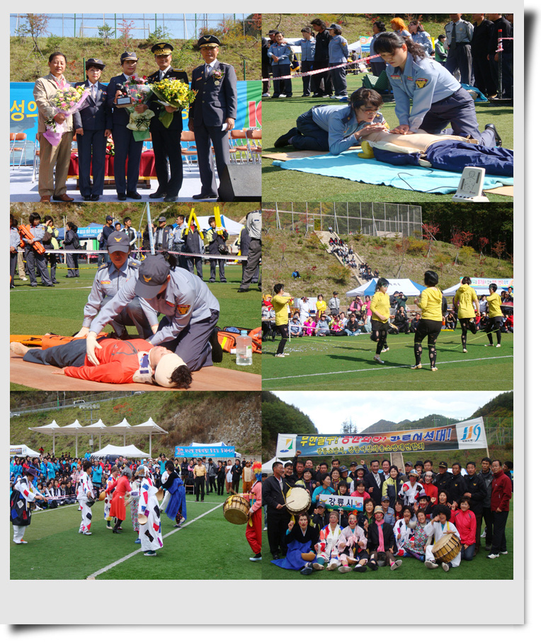 강릉소방서(서장 김기성)는 10월 9일 금요일 10시부터 17시 30분까지 태백시 종합운동장 뒤 공원에서 개최하는 제3회 강원도지사기 여성의용소방대원 응급처치경연대회에 참석하였다.