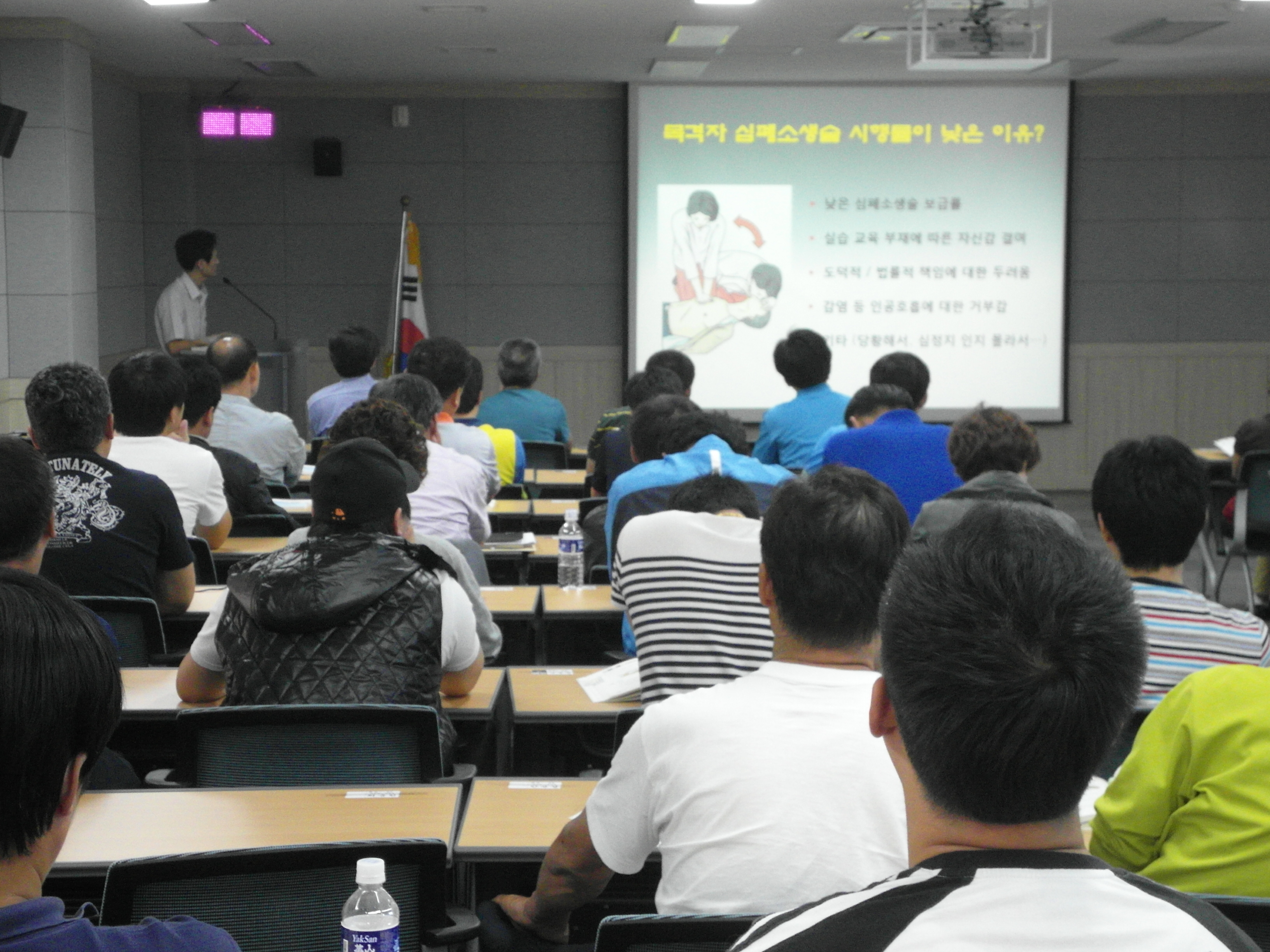 9월 18일(화) 강릉과학산업진흥원 본관동 2층 강의실에서 2012년도 위험물안전관리자 강습 교육자 60명을 대상으로 실시한 심폐소생술 교육