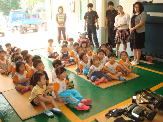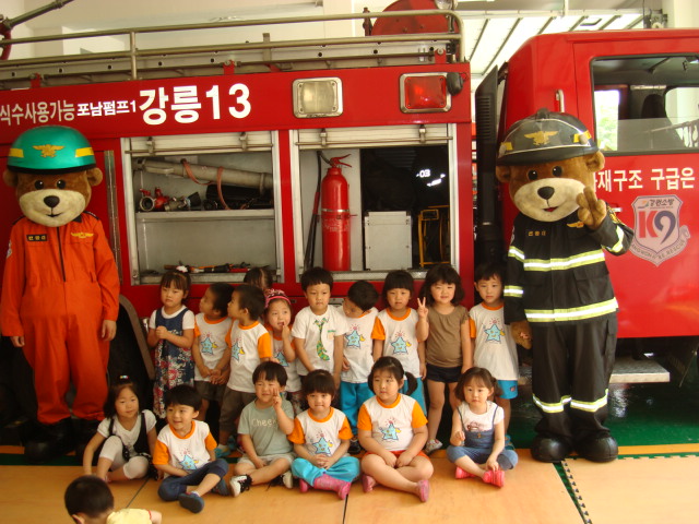 강릉소방서(서장 김남숙) 포남119안전센터에서는 2013년6월25일 10시경 꿈동산몬테소리어린이집(포남동 소재) 소방서 견학에 따라 소방서 업무소개, 소방서 장비 소개, 화재시 119신고요령 및 대피요령, 소방차 탑승 및 방화복 착용 체험, 소화기 사용 방법 및 소화기(교육용 물소화기) 사용 실습 등 "어린이 소방안전교육"을 실시하였습니다.