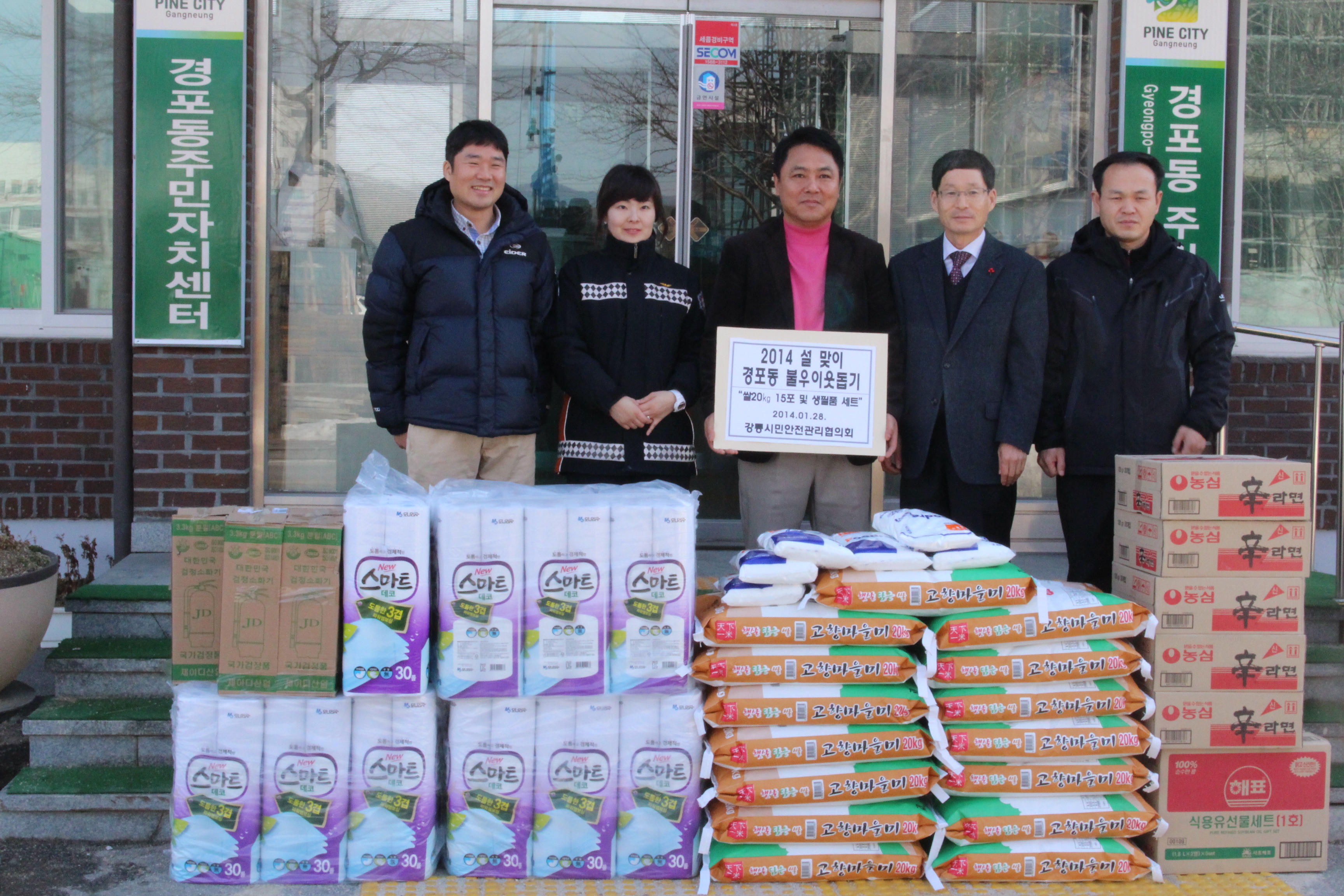 2014. 1. 28(화) 시민안전관리협의회와 함께 식료품 및 기초소방시설을 지원하였습니다.
