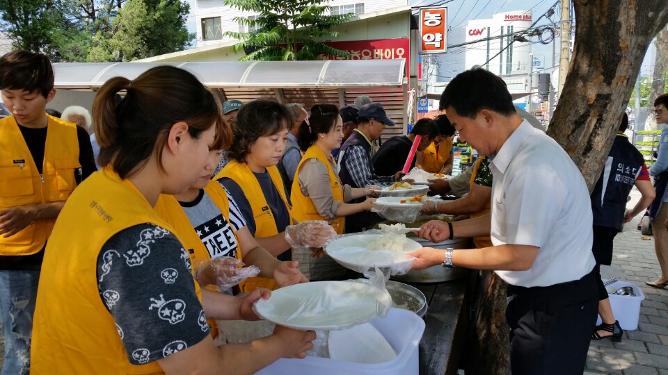 강릉소방서(서장 정은철)와 강릉 구정 남․여의용소방대 대원들은 3일(목) 오전 11시부터 강릉시 남대천 버드나무 노인쉼터에서 소외계층 및 독거어르신 등 150여명을 대상으로 ‘사랑의 밥차’를 이용하여 무료급식 봉사활동을 실시하였다.