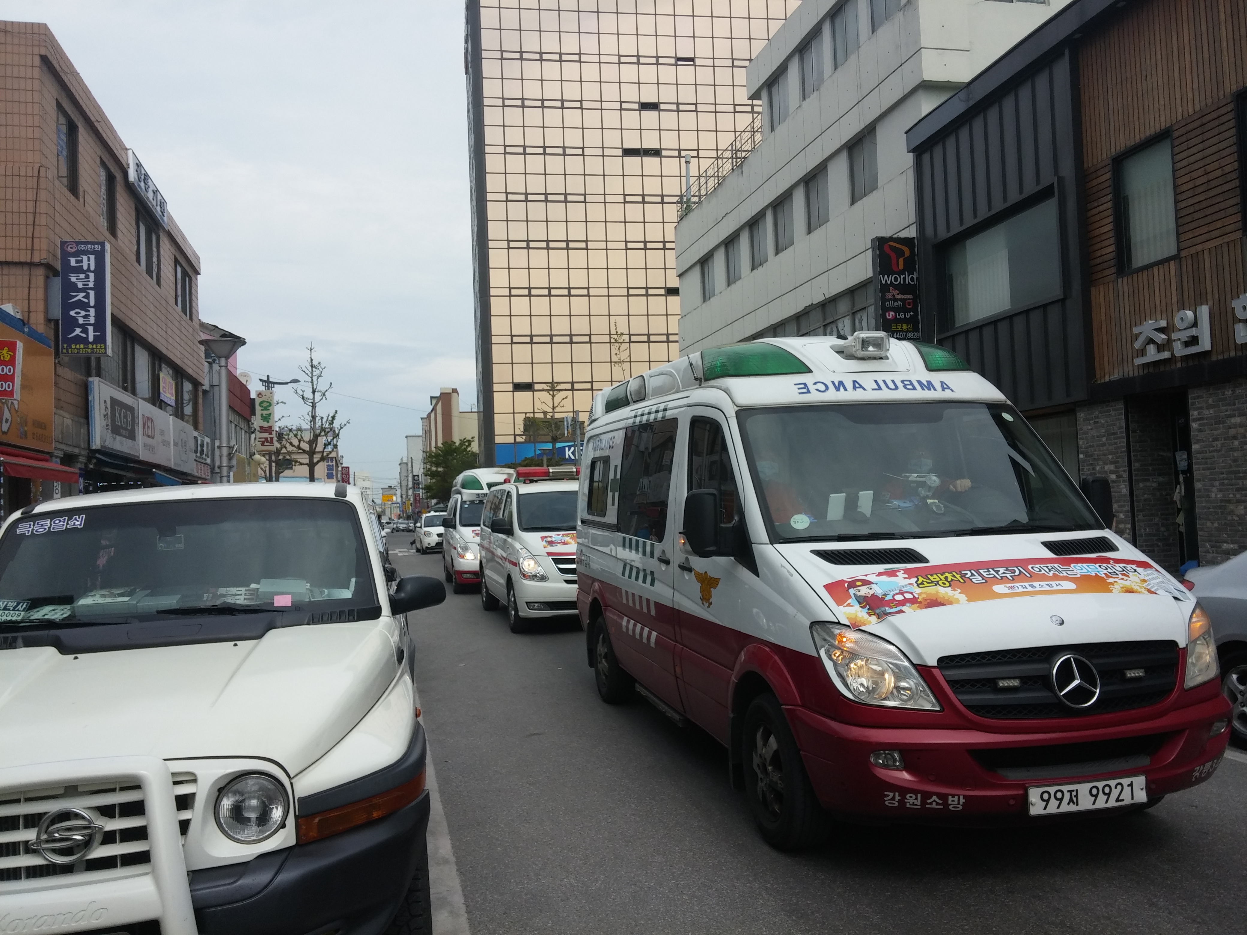소방차 길터주기 훈련을 실시하였습니다.