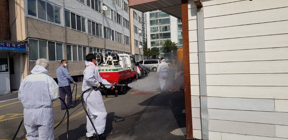 강릉소방서 의용소방대 일원 코로나19 대응 관내 방역소독 자원봉사 실시