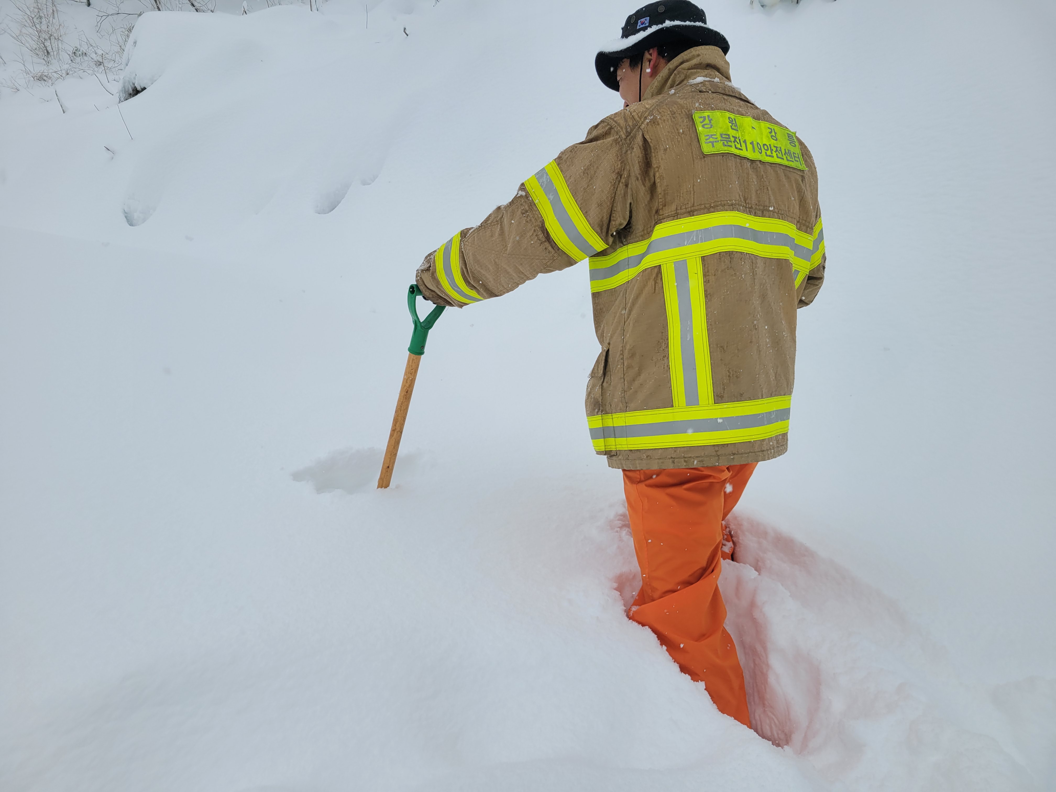 주문진 119안전센터, 폭설 중 눈길 헤치고 독거노인 도와.