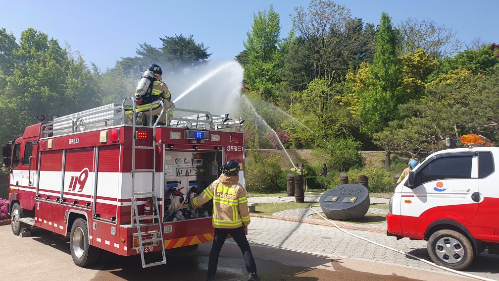 이번훈련은 시청 및 오죽헌 관계자들이 참여한 가운데 총 29명 과 소방장비 4대로 진행되었습니다.