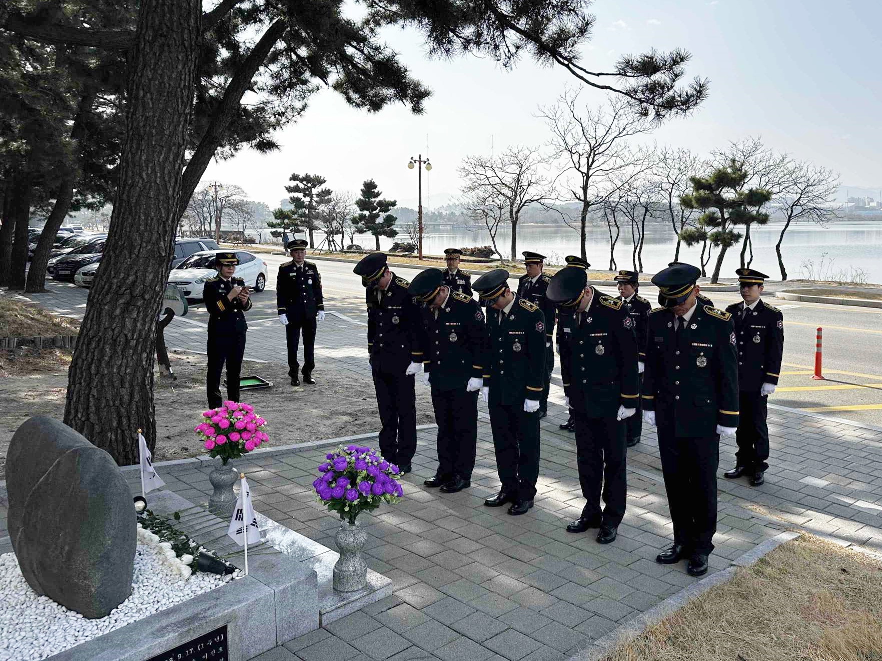 신고식 후 신규 소방공무원들은 석란정 추모비를 방문해 헌화 및 참배하는 시간을 가지며 강릉시민의 안전을 위해 최선을 다하겠다는 결의를 다졌습니다.