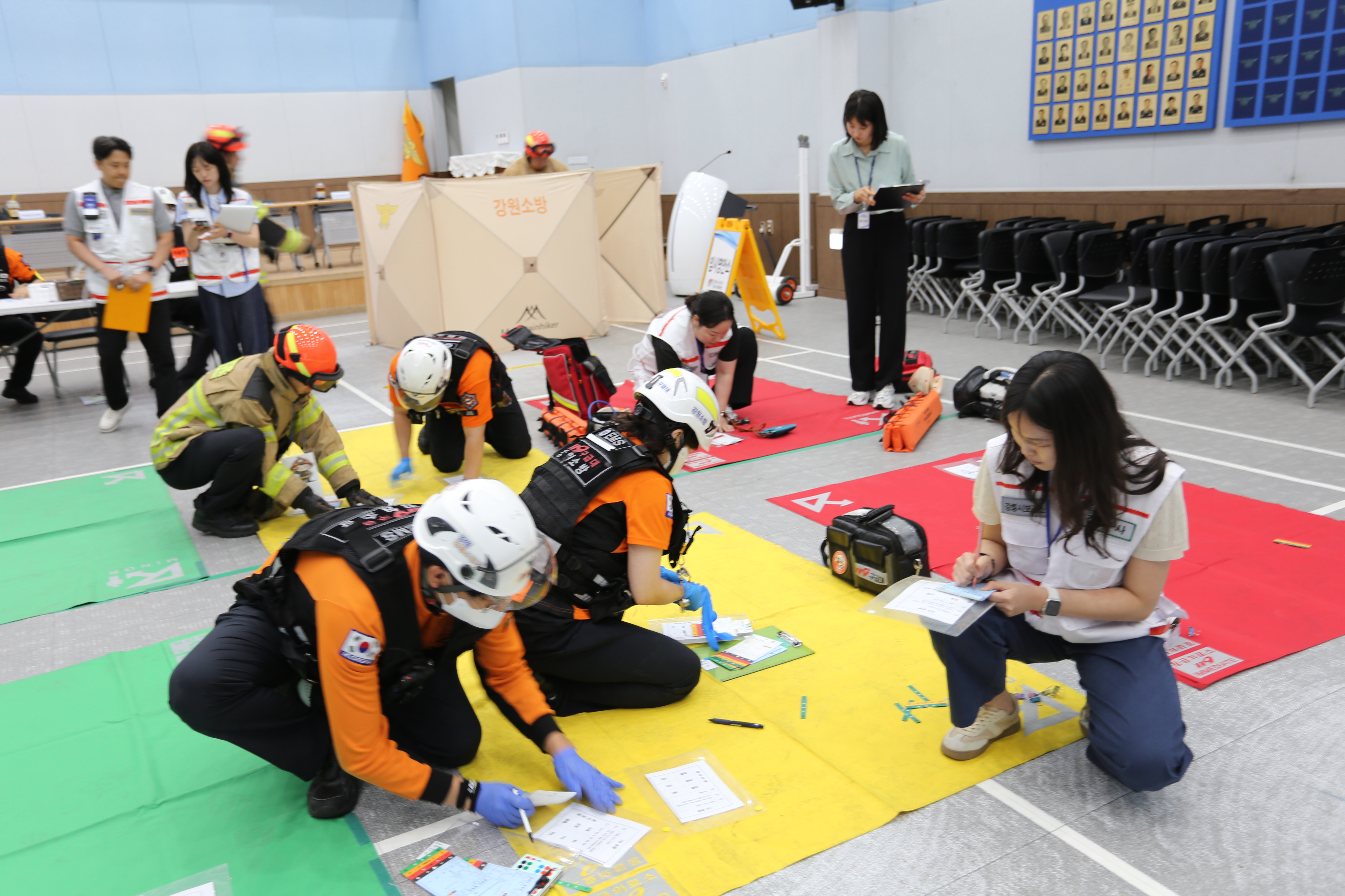 강릉소방서 구급대원 68명은 대회의실에서 다수사상자 구급 대응응 훈련(평가)를 실시하였습니다!