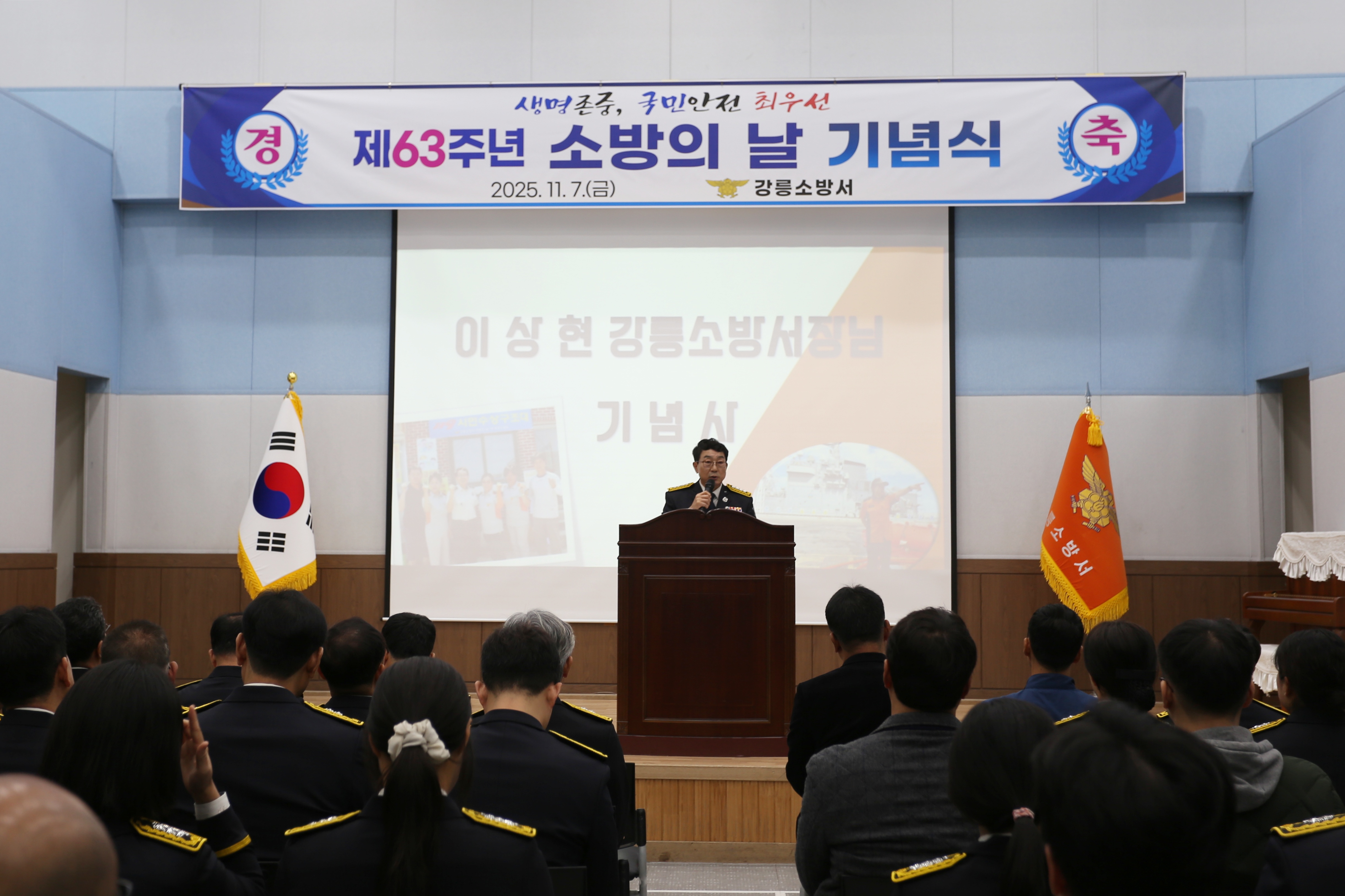 강릉소방서는 7일 오전 10시 강릉소방서 대회의실에서 제63주년 소방의 날 기념식을 개최하였습니다.