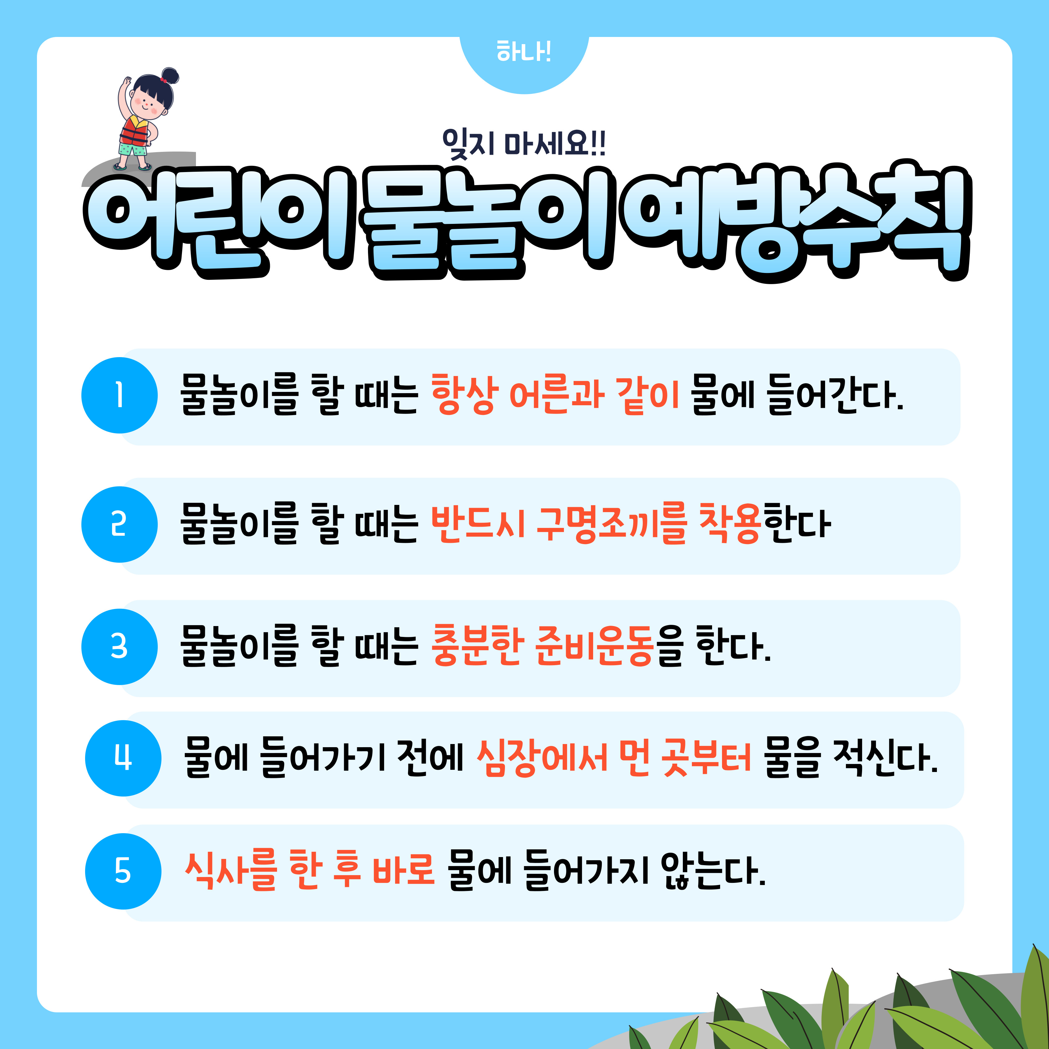 꼭 지켜야 할 여름철 물놀이 안전 수칙을 알아 보아요.