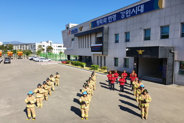 고성소방서는 6일 오전 코로나19 극복을 위해 최전선에서 헌신하는 의료진과 관계자들을 응원하는 ‘덕분에 챌린지’에 동참했다.
