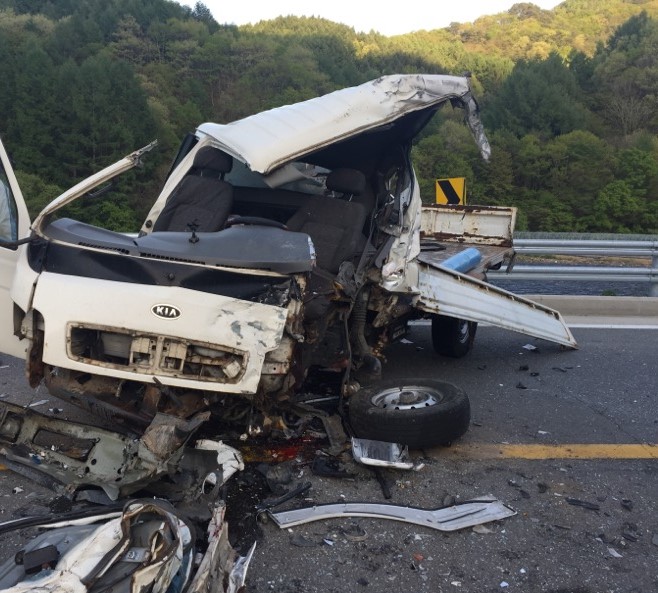 4. 인명피해: 2명(1톤포터 운전자(류**/남/64)-의식호흡없음, 5톤화물운전자(이**/남/48)-양쪽무릎통증호소 외 양호)