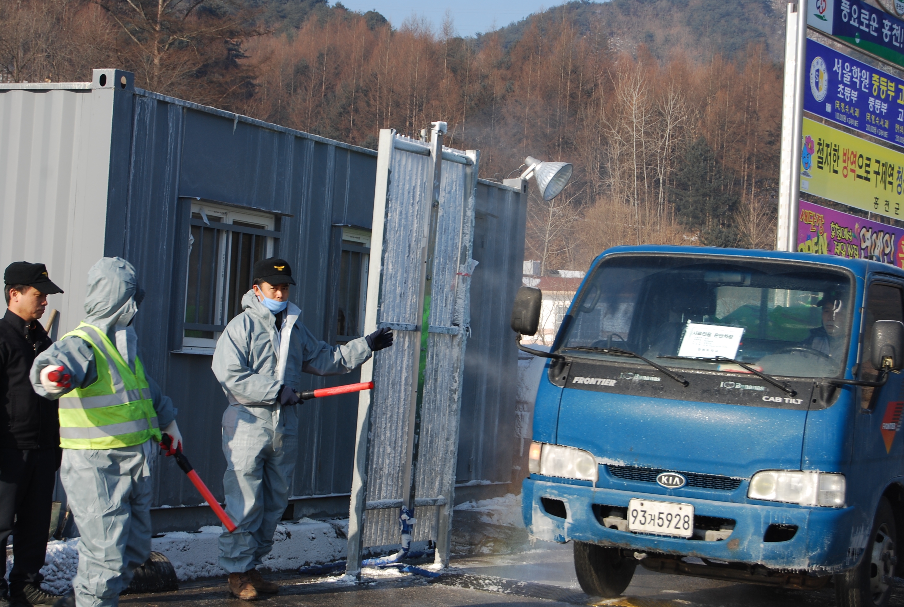 홍천소방서(서장 김진봉)는 1. 18일 부터 구제역 종식시까지 관내 구제역 방역초소 3개 지점(동면성수리, 와동리,남면)에 소방공무원 115명이 동원 되어 구제역 확산차단 및 발생지역 조기 수습 ㆍ대응활동 등을 지원한다.