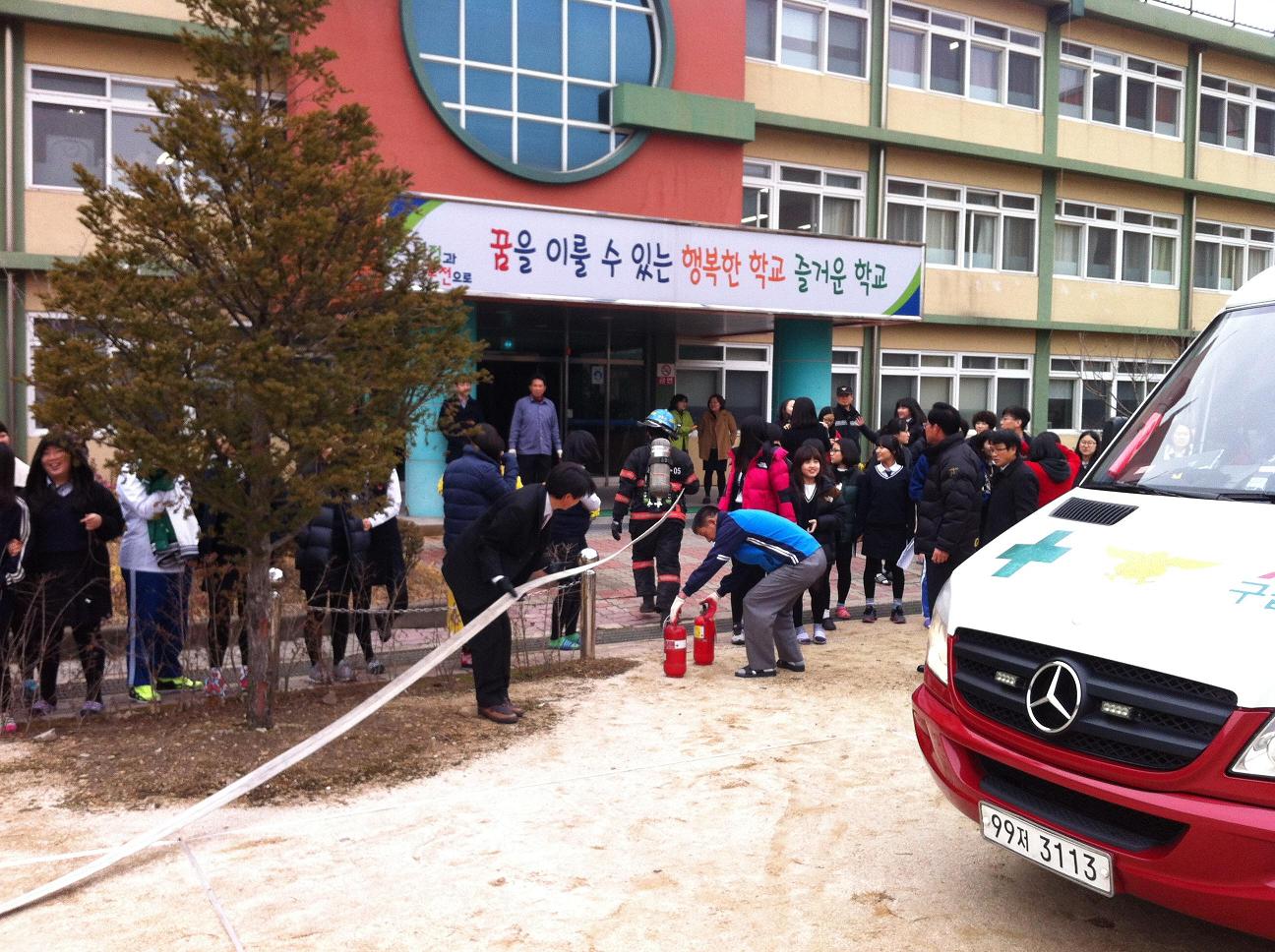 실시 되었고, 추운날씨에도 불구하고 교직원 및 학생들이 적극적으로 참여하여 실질적인 훈련이 되었다.