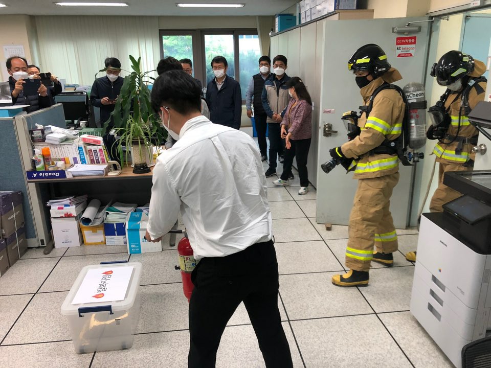 □ 홍천119안전센터 대원들은 농어촌 공사 직원과 관계자를 대상으로 화재 발생 시 신속한 신고와 대피에 중점을 두고 공공기관 합동 훈련을 진행했다.