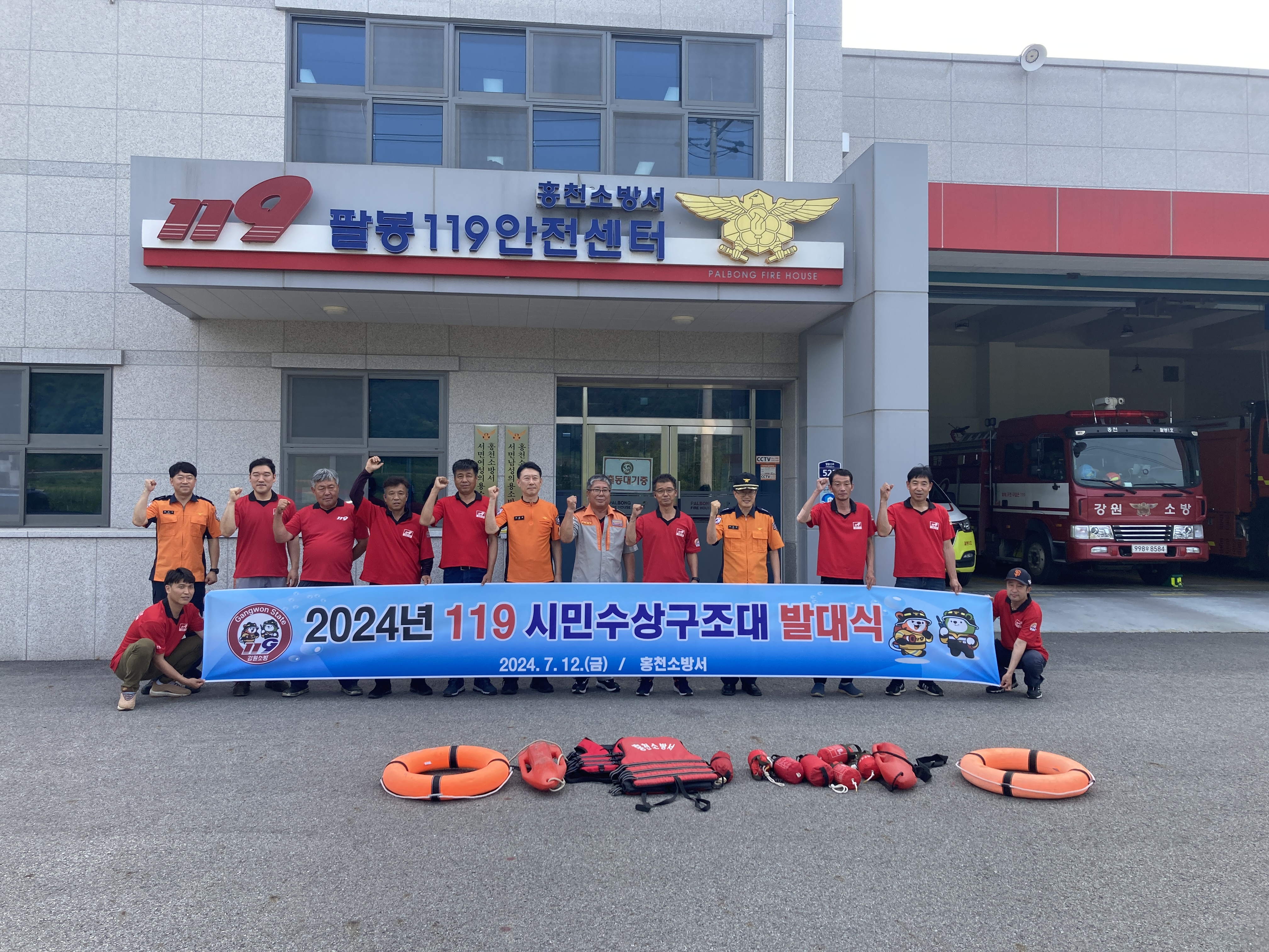 홍천소방서(서장 김숙자)는 12일 팔봉119안전센터에서 119시민수상구조대 발대식을 개최했습니다.