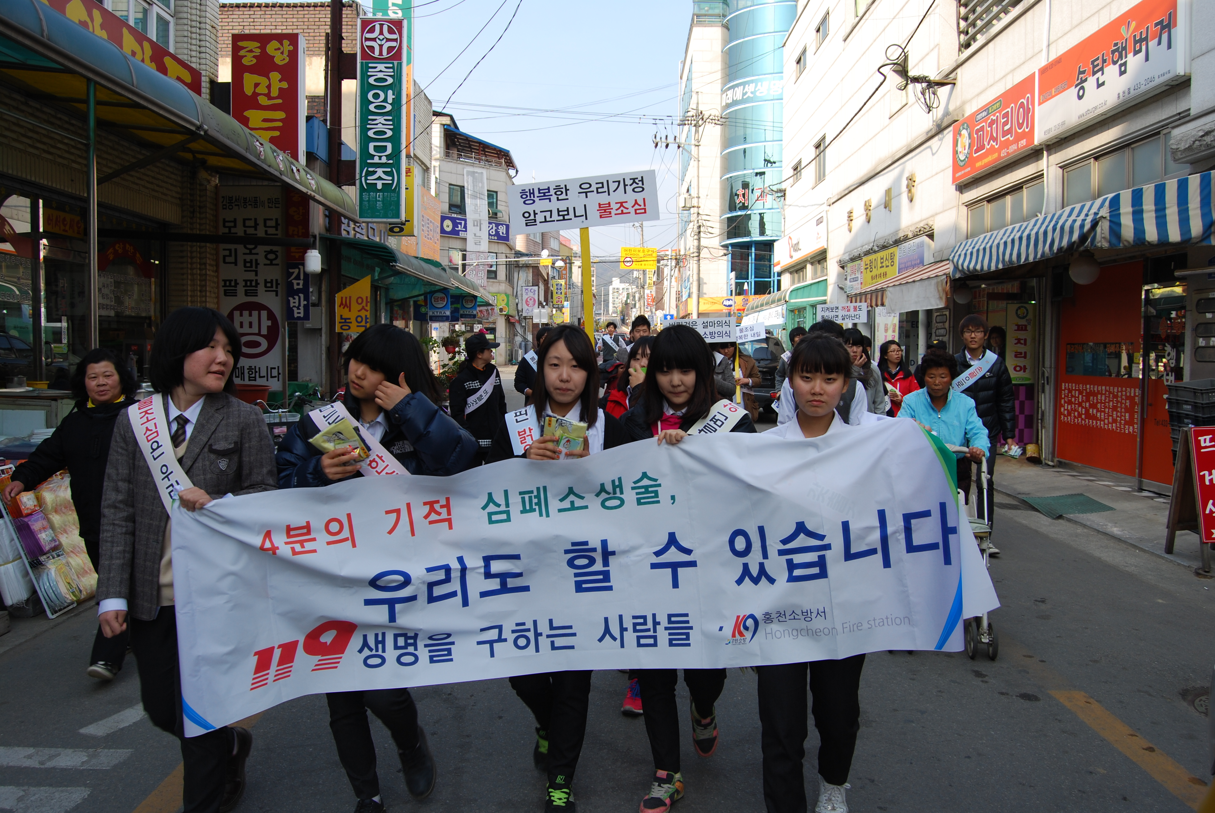 전통시장 ~중앙로 ~홍천농고까지 불조심예방홍보와