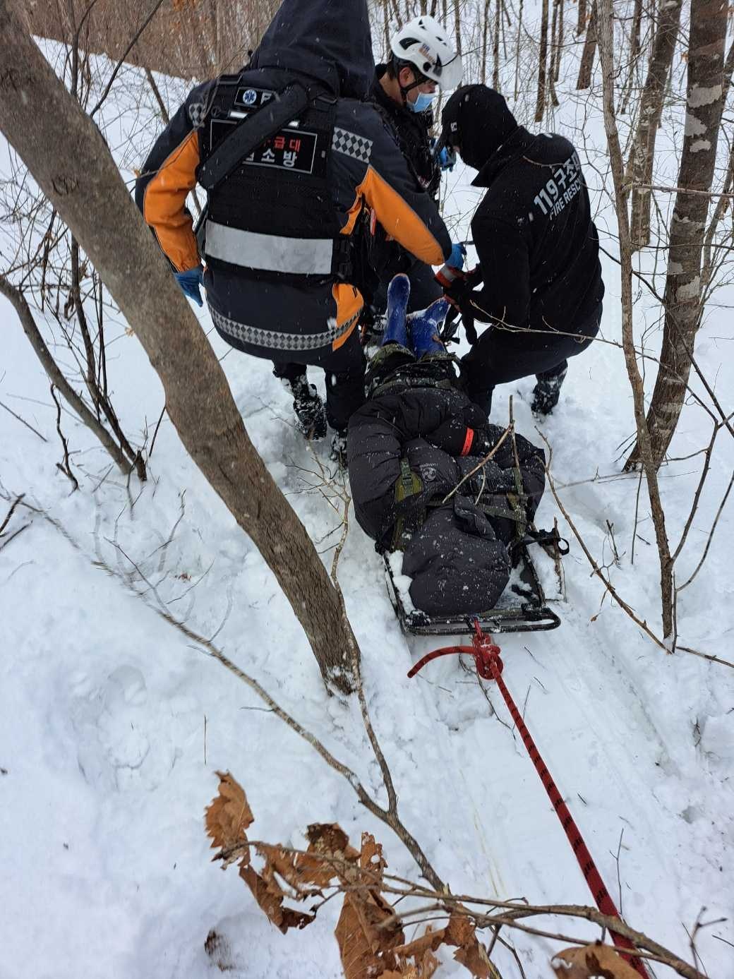 당시 산에는 눈이 많이 쌓여 있는 상태로 자칫하면 생명을 잃을 수 있는 상황에서 신속한 구조가 이루어져 병원으로 안전하게 이송되었다.