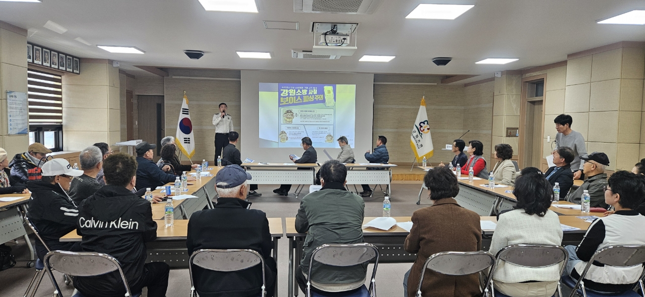 홍천소방서(서장 이강우)는 19일 화촌면 행정복지센터에서 홍천펜션민박협회 임원진을 대상으로 봄철 화재예방 특수시책의 일환인 화재예방 및 보이스피싱 예방교육을 실시했다고 밝혔다.