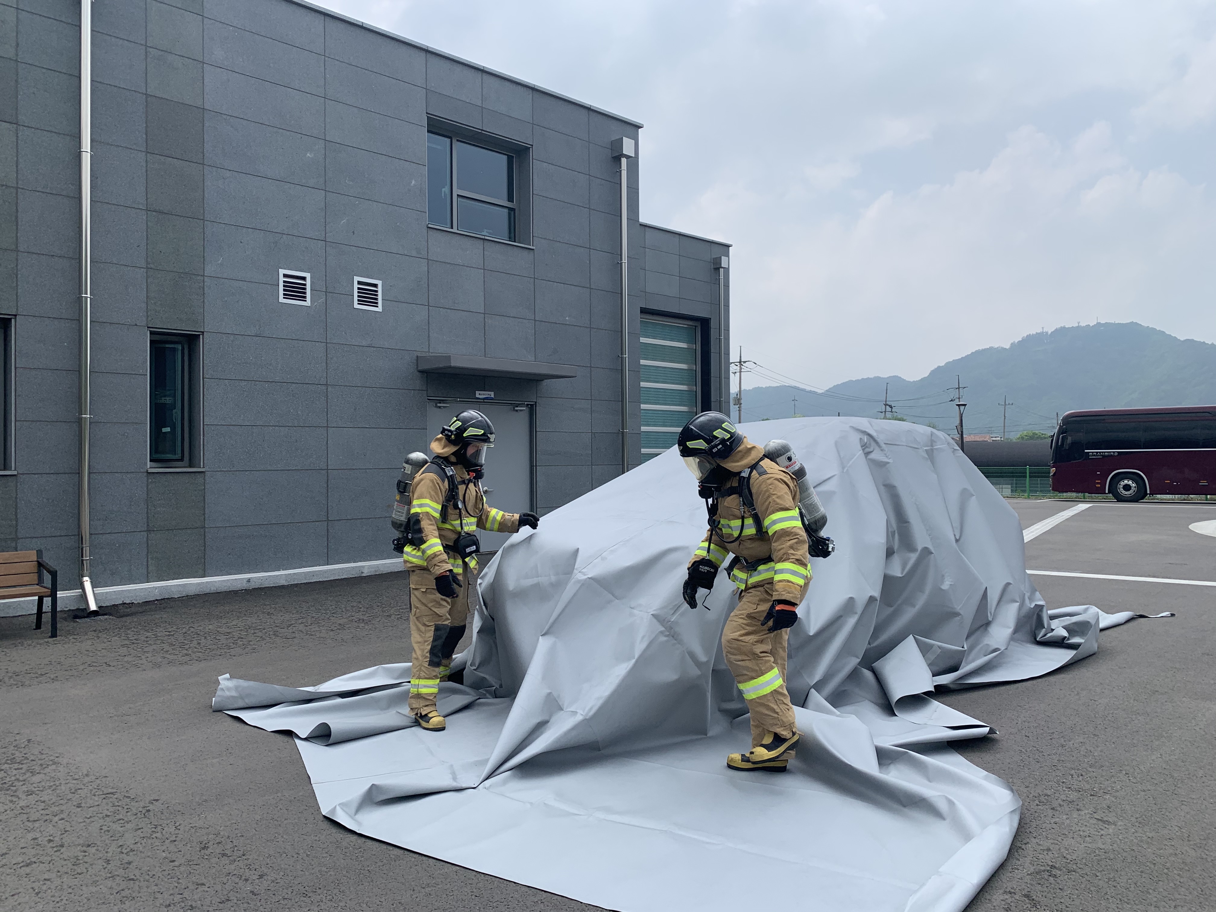 화천소방서, 차량화재 질식소화포 적용 훈련