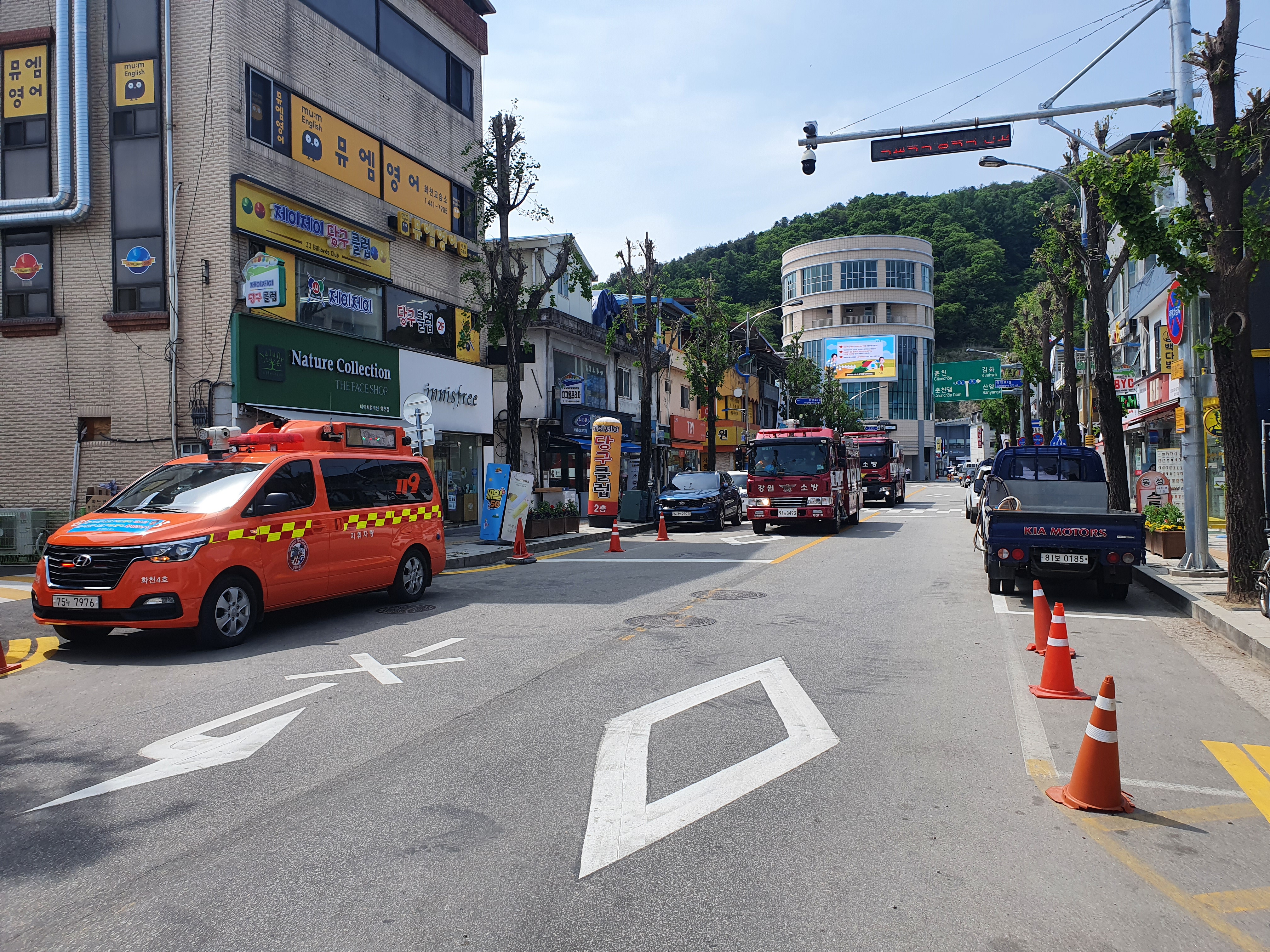 화천소방서, 소방차 길 터주기 훈련 실시