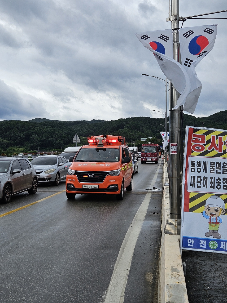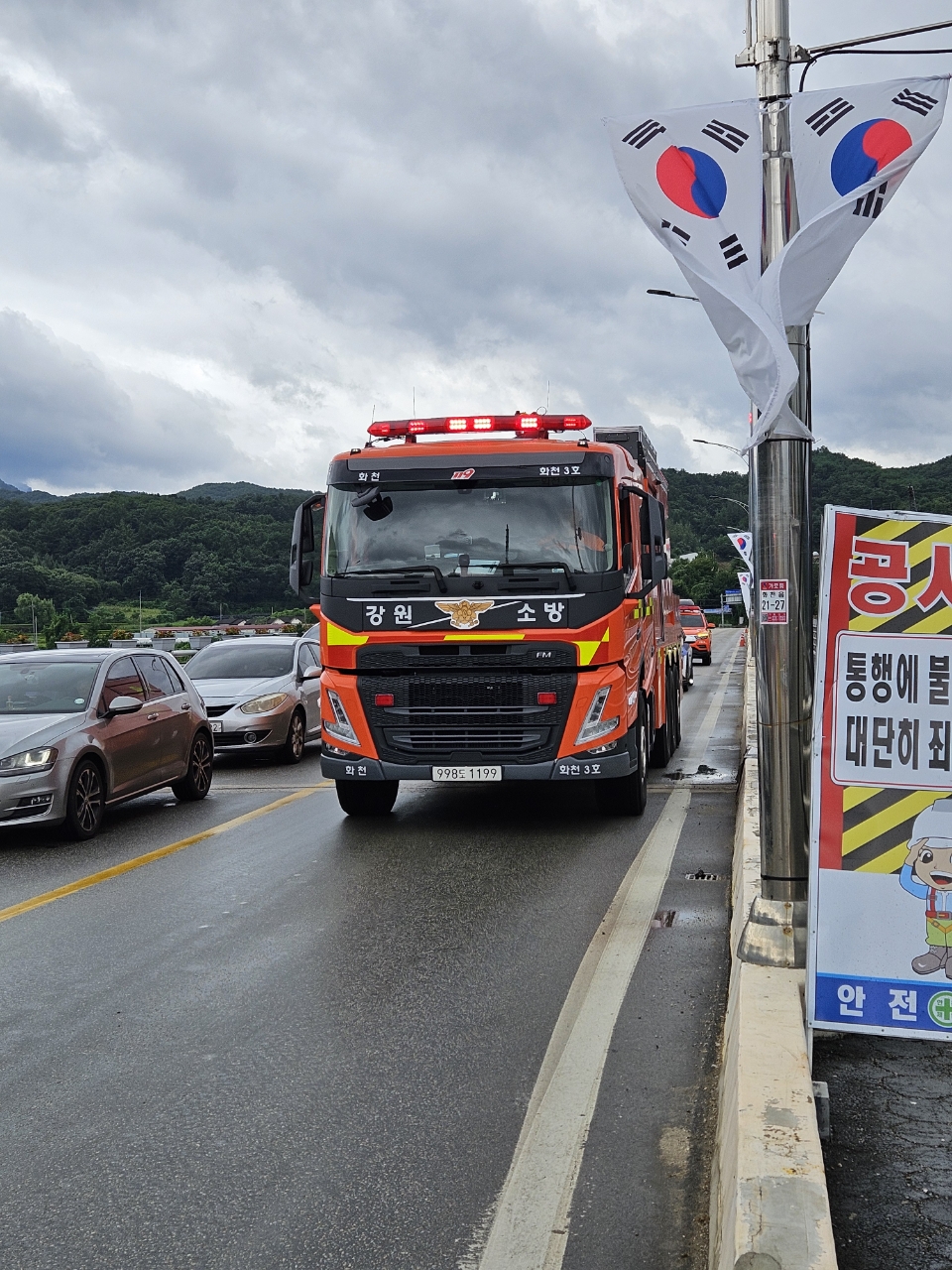 화천소방서 전국 동시 소방차 길 터주기 훈련 실시!