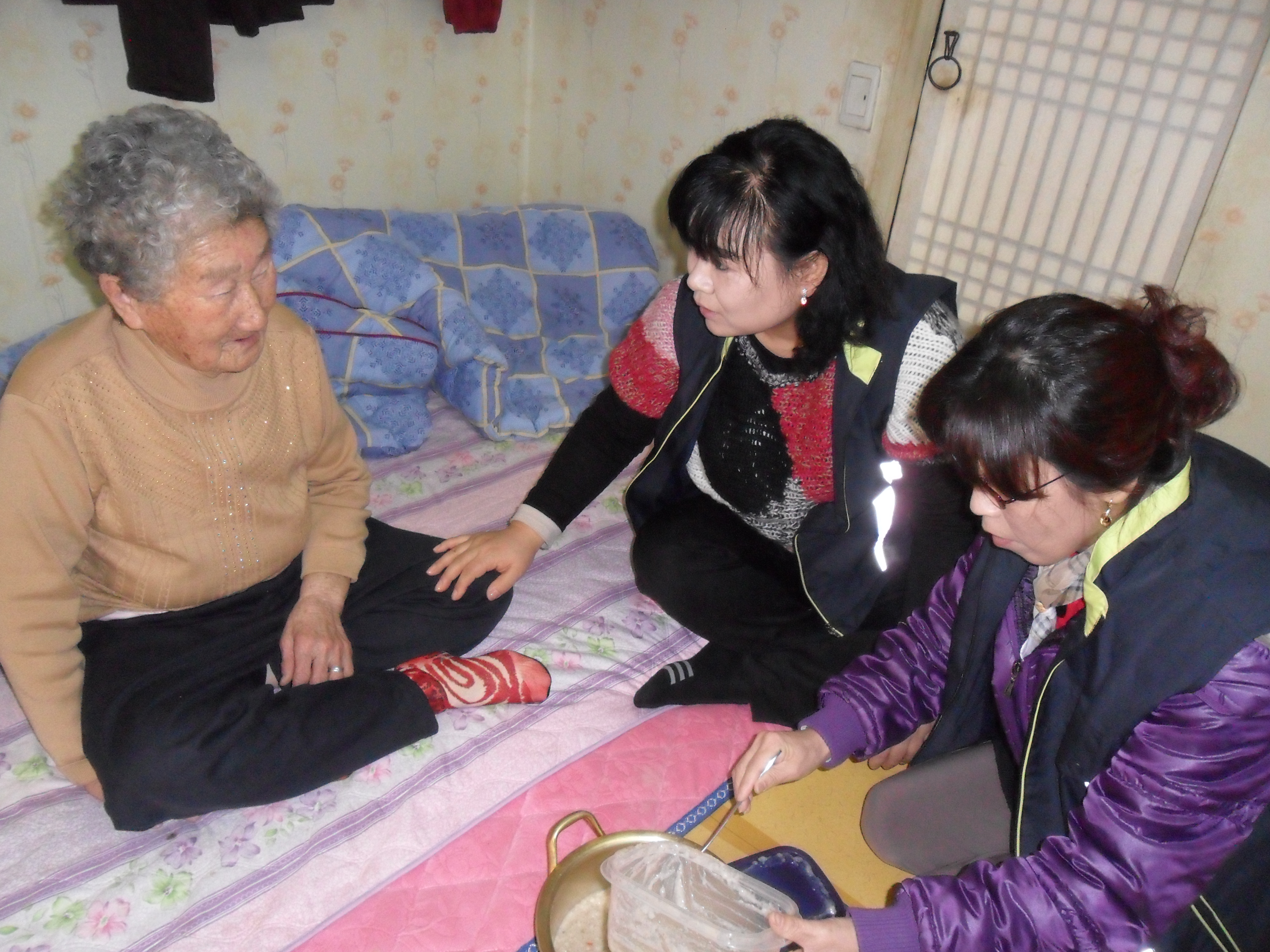 힘들어 하셨는데 오늘 들깨죽을 먹게 되어서 너무 고맙다며 손을 잡아 주셨습니다