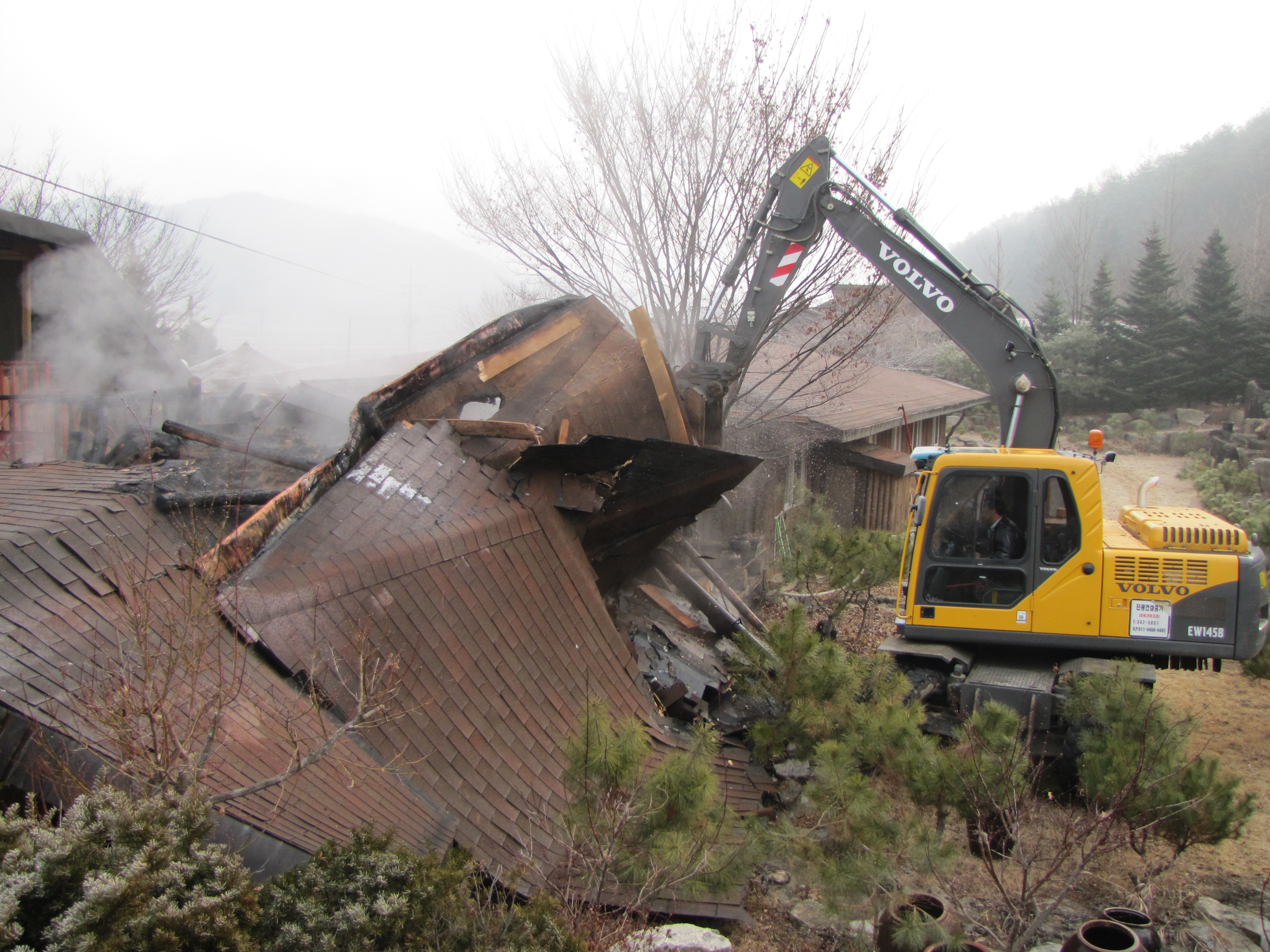 청일면 유평리 375 경성목양관 별관(황토방)화재발생