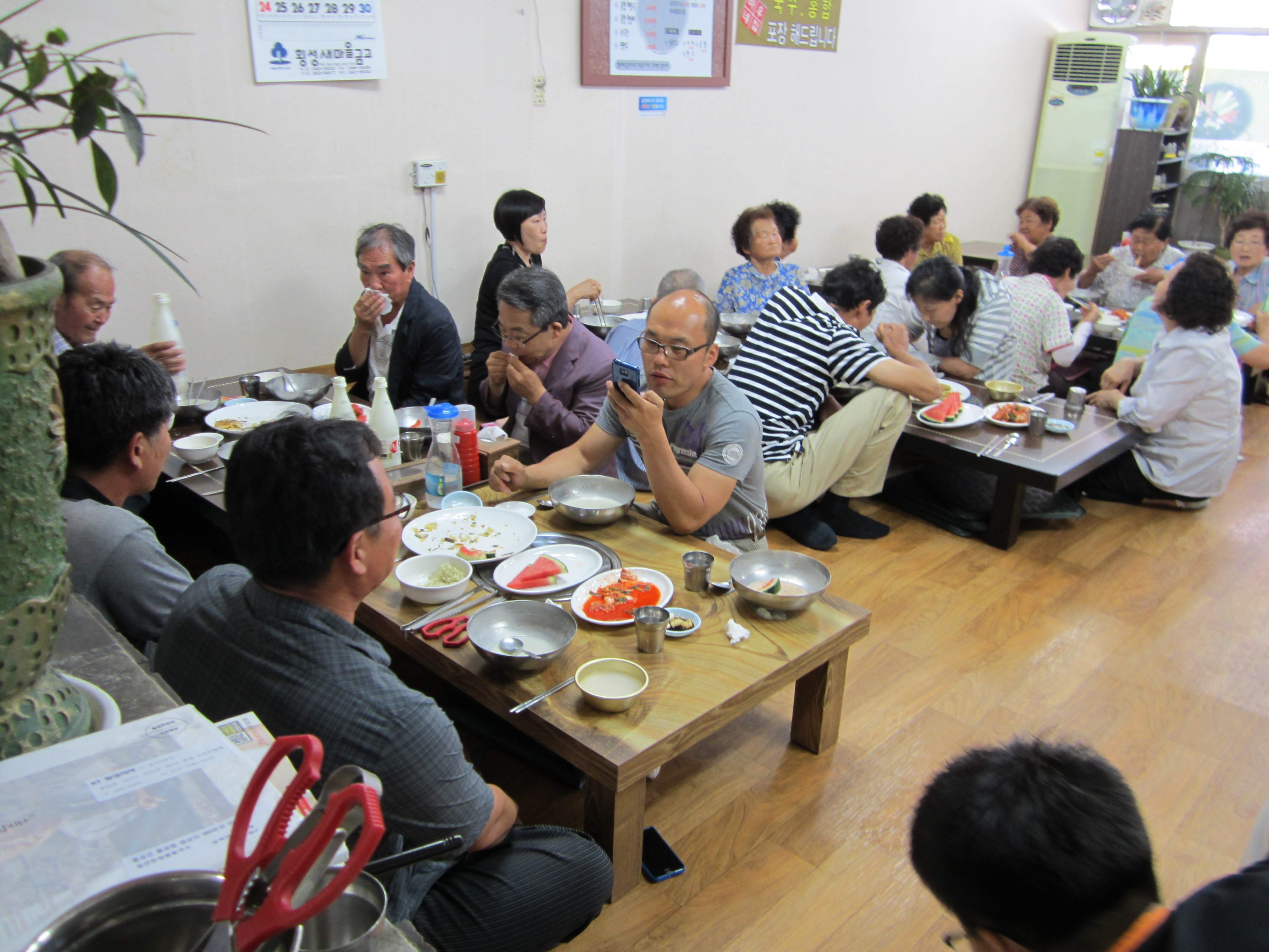 2012년 6월 26일 횡성의소대와 자매결연마을 송전리 어르신들을 모시고 얼큰한해물칼국수에서 콩국수 점심 접대를 실시하였습니다. 어르신 22분과 간부님들 및 일부 대원님께서 참석하셨습니다. (횡성소방서에서 버스를 허용해 주셔서 모셔올 수 있었습니다. 감사합니다.)