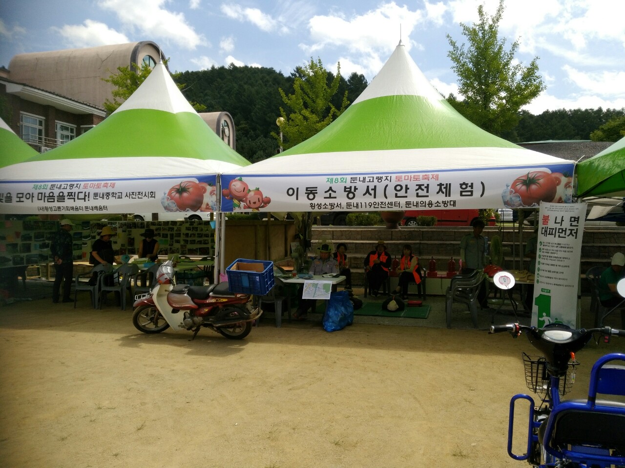 8월 9일~10일 실시된 제8회 둔내고랭지토마토축제장에 안전지킴이로 둔내 남,여의용소방대가 함께했습니다.소방안전체험운영과 행사장내 주차안내 등 지역축제에서 봉사소방의 위상을 높이는데 둔내남,여 의용소방대가 많은 역할을 하였습니다.