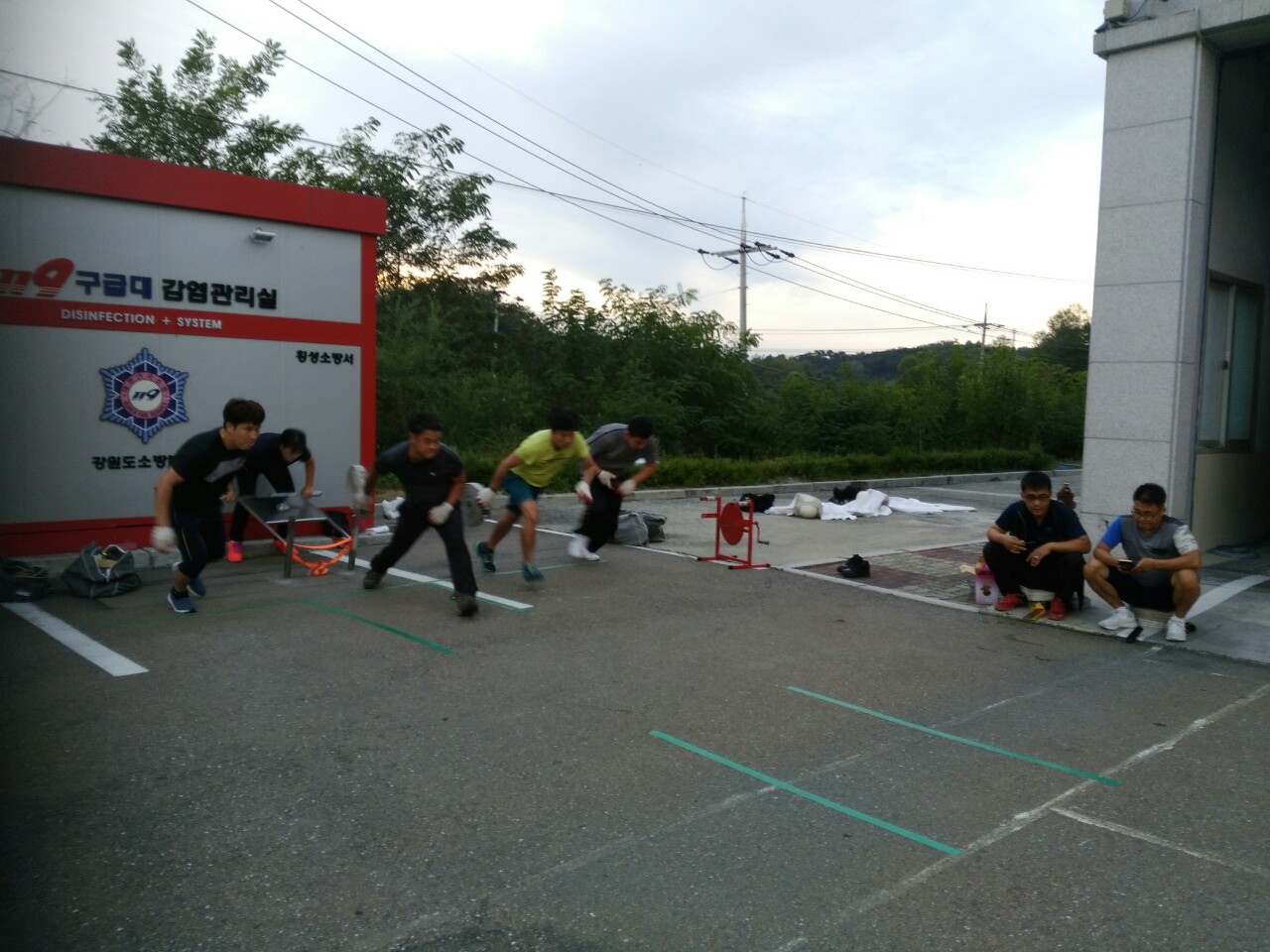 우천의용소방대 배성문대장외 9명은 연일 우천센터에서 수관연장방수자세 종목에서 우수한 성적을 거두기 위해 구슬땀을 흘렸습니다. 바쁜 생업에도 시간을 쪼개서 최고 성적을 내기위해 뛰고 있는 우천의용소방대에게 많은 응원을 부탁합니다,,,,횟팅!!!
