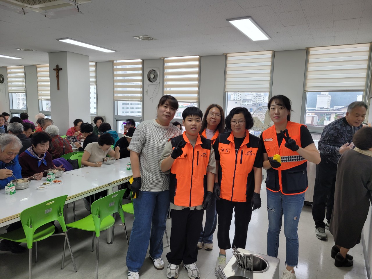 대원들은 어르신들의 식사 배식과 정리, 청소 등을 도우며 밝은 미소로 즐겁게 봉사에 임했다.