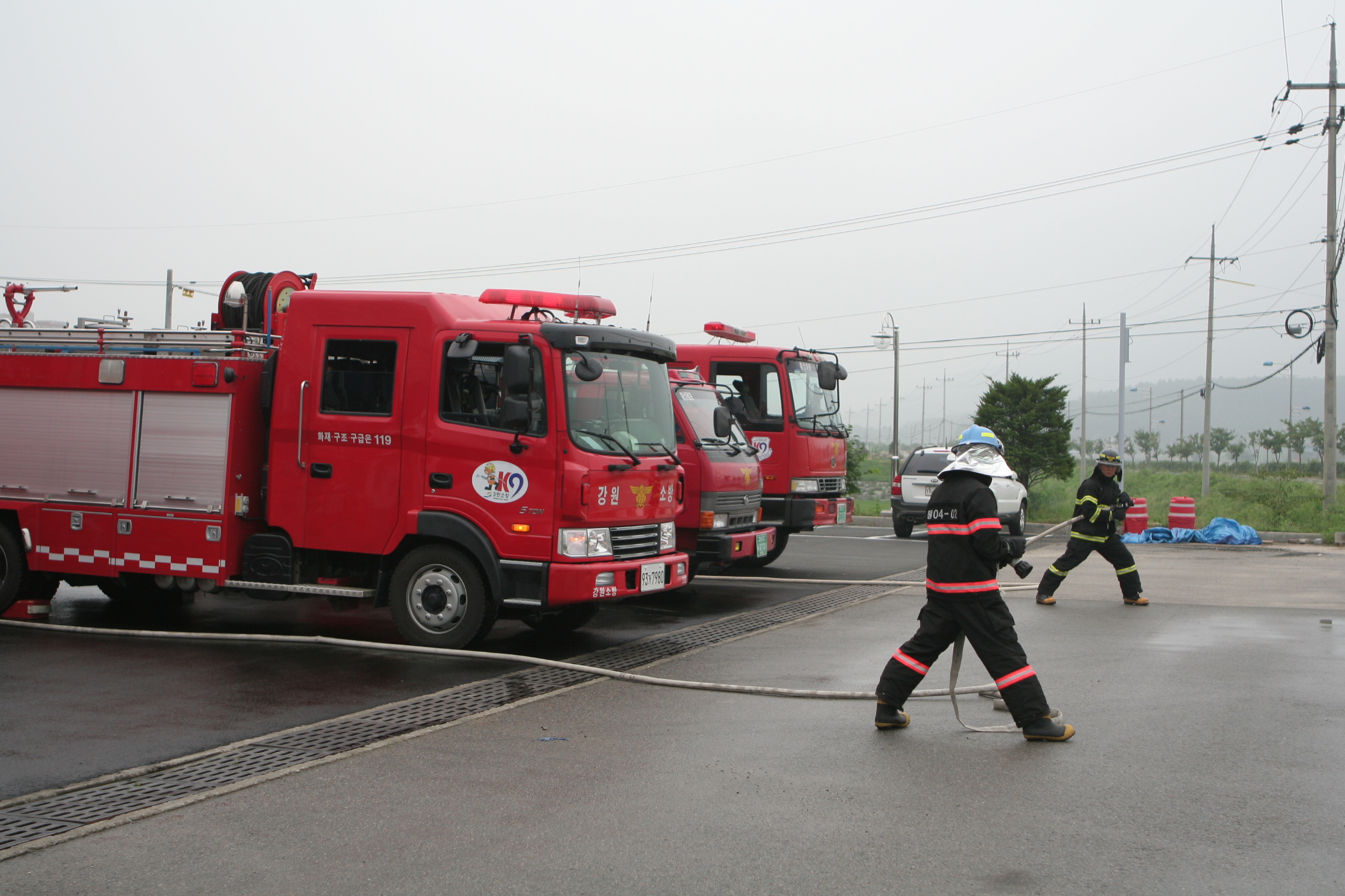횡성소방서(서장 조근희)에서는 8월 16일(월) 11:00 횡성센터 및 구조대 불시출동훈련을 실시하였습니다. 이번 훈련은 청사 주변 가상화점을 설정하여 개인안전장구 착용 및 차량탑승 차고탈출하여 숙달된 장비조작능력을 발휘하여 신속하고 정확한 화재진압활동을 위하여 실시하였습니다. 앞으로 불시출동훈련을 통하여 화재진압능력을 향상시켜 나가겠습니다.